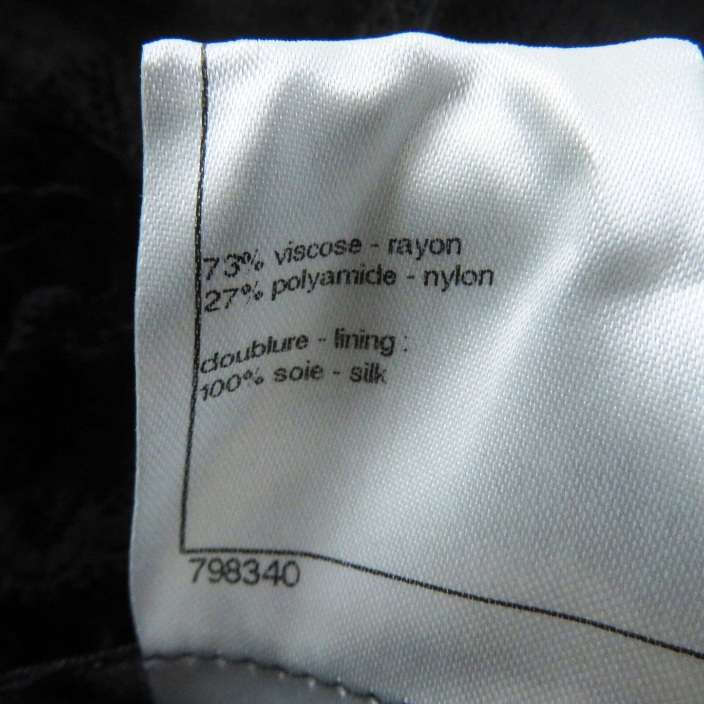 Material: Outer: 73% rayon, Outer: 27% nylon, Lining: 100% silk