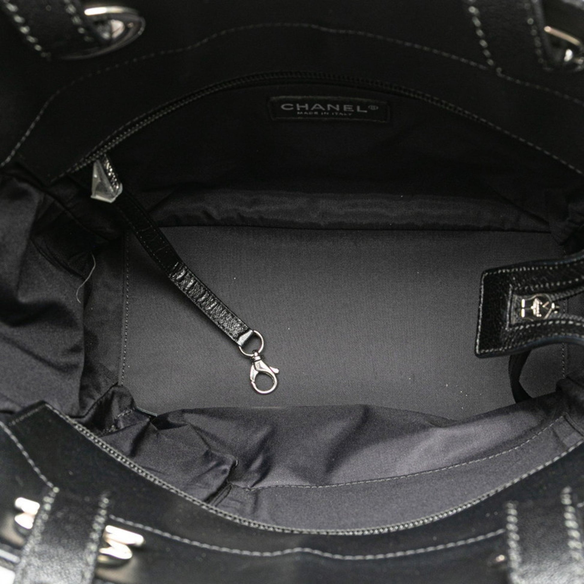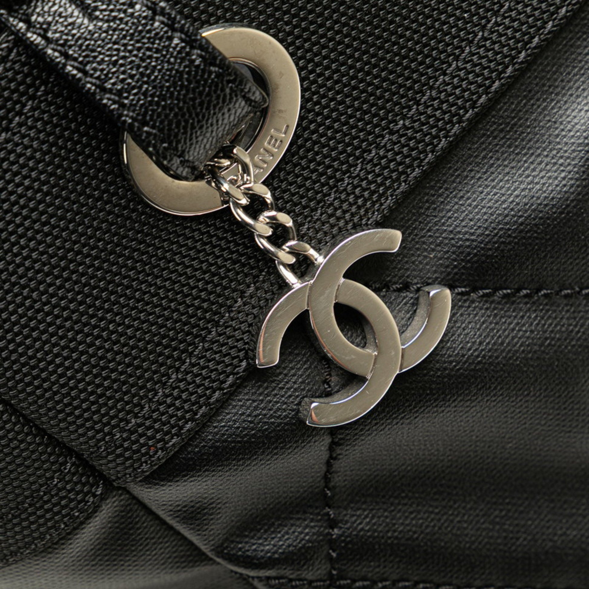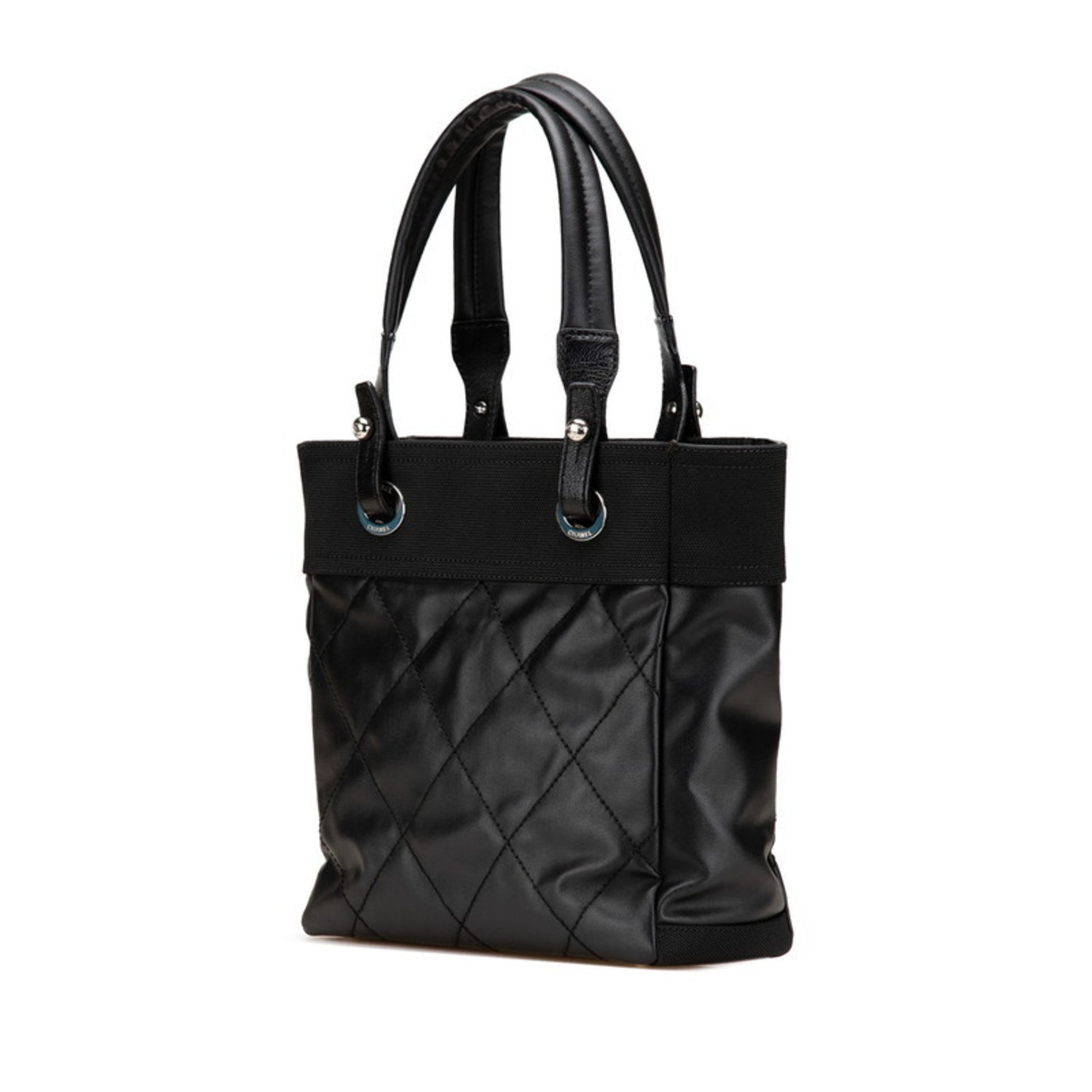 Chanel Paris Biarritz Tote Pm Bag Shoulder Black Leather Coated Canvas