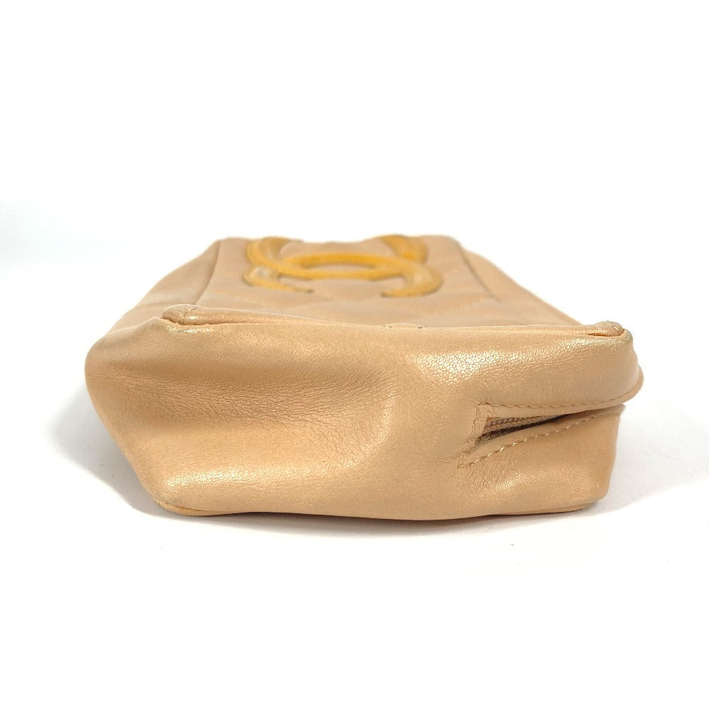 Chanel Pouch Leather Beige Cambon Line Cc Coco Mark Logo Women