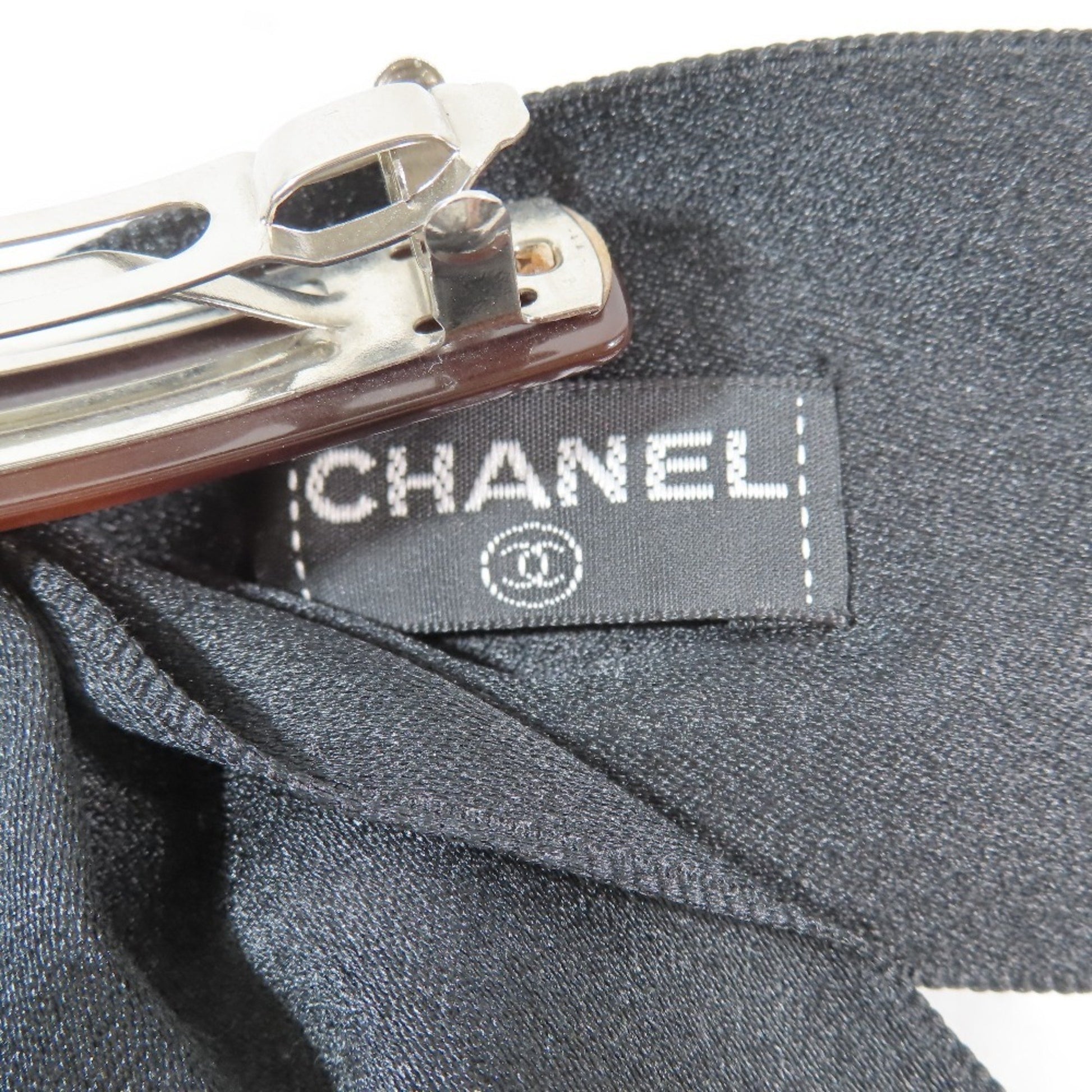 Chanel Satin Ribbon Barrette Accessories Hair Clips Hairpins Black