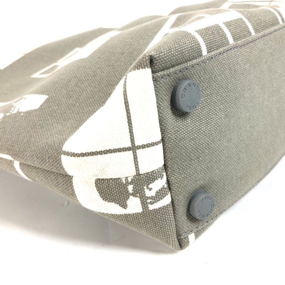 Chanel Shoulder Bag Canvas Gray Shoulder Window Line Women