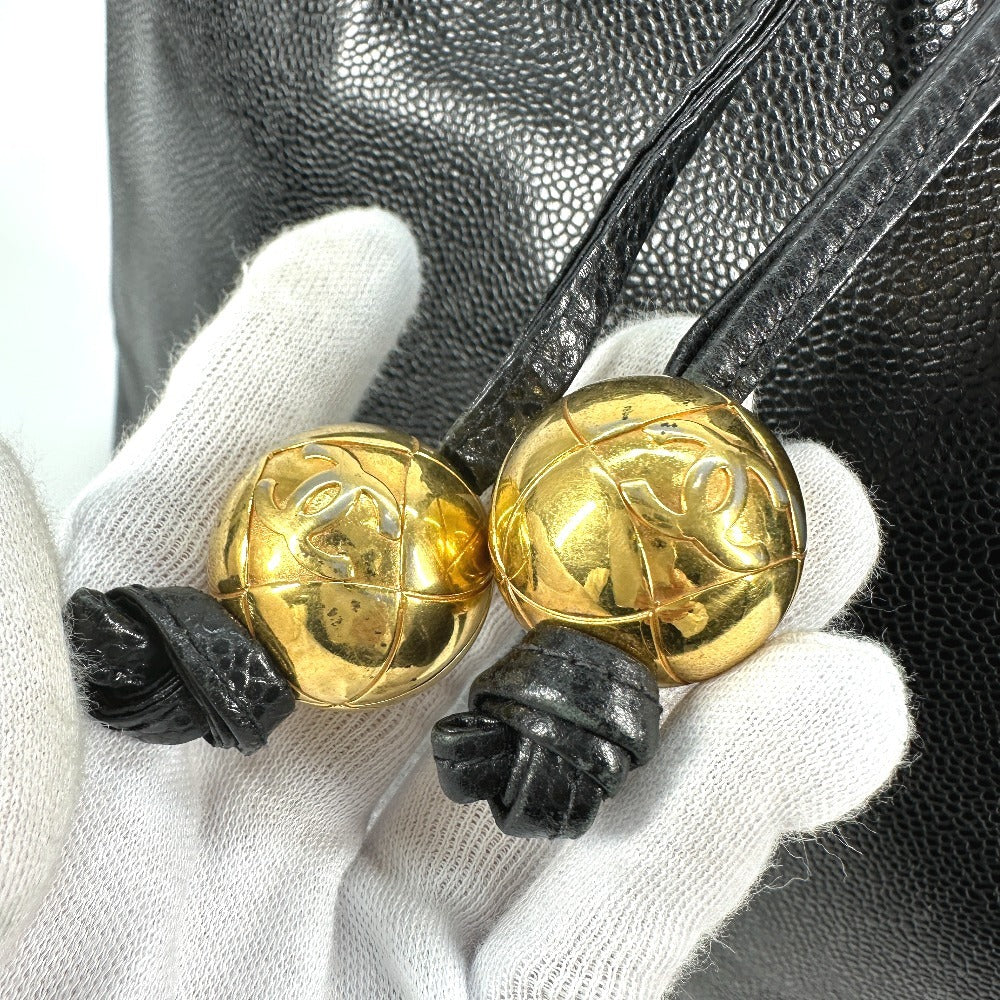 Chanel Shoulder Bag Caviar Skin Black Vintage Cc Coco Mark Decacoco Women