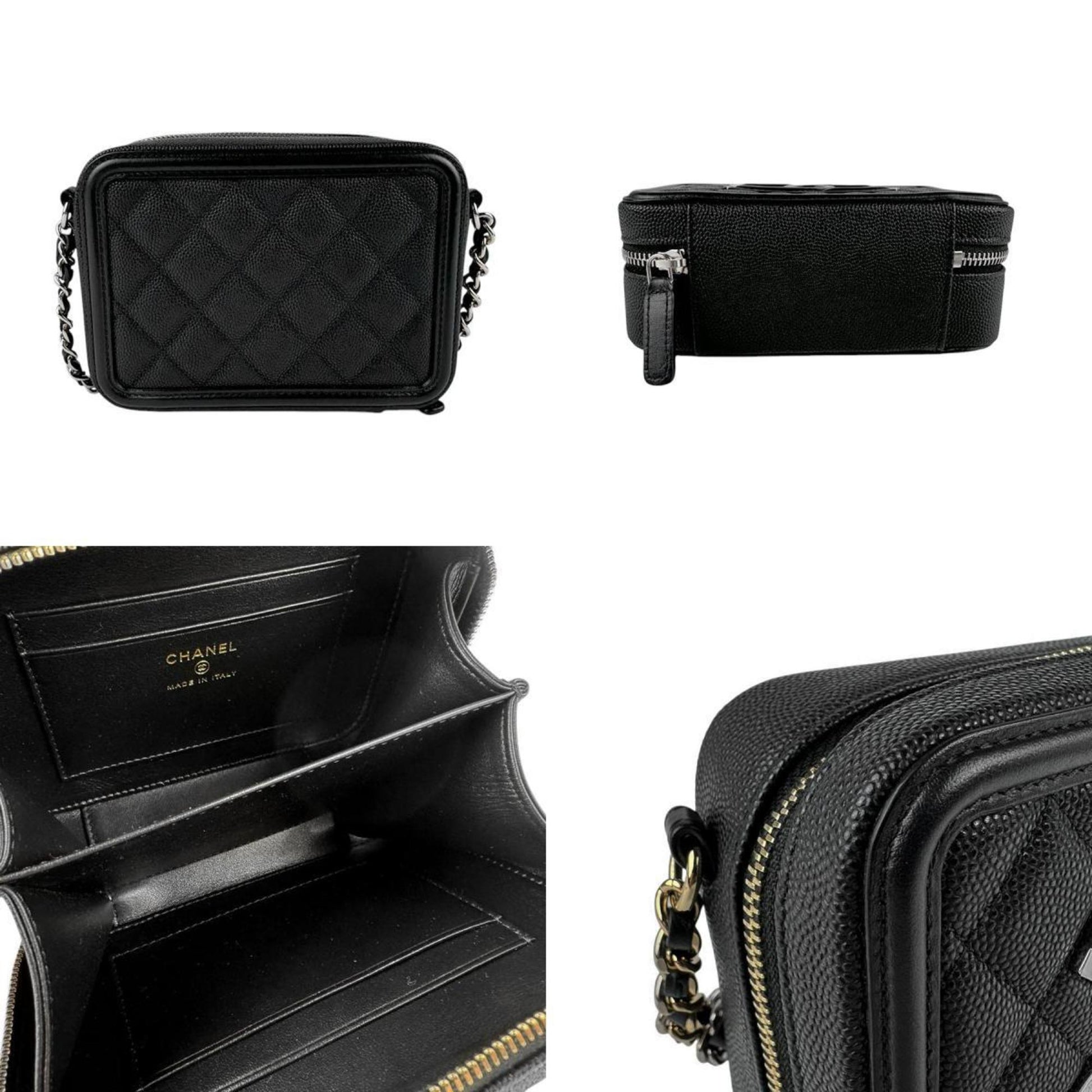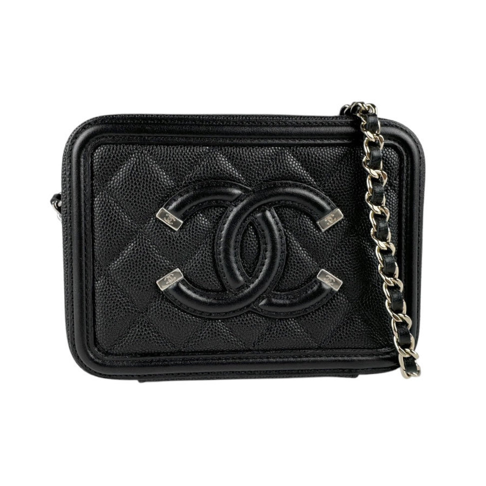 Chanel Shoulder Bag Cc Figley Caviar Skin Leather Black