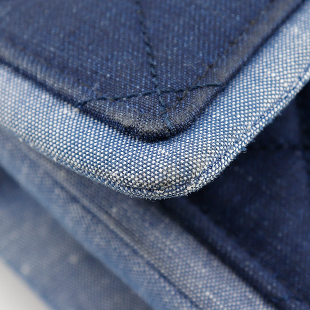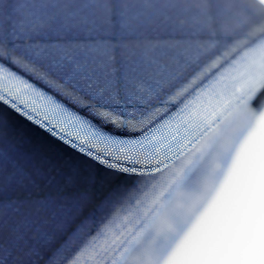 Chanel Shoulder Bag Denim Blue Double Chain Matrasse Chainshoulder Women
