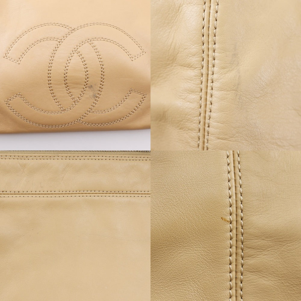 Chanel Shoulder Bag Lambskin Beige Coco Mark Women