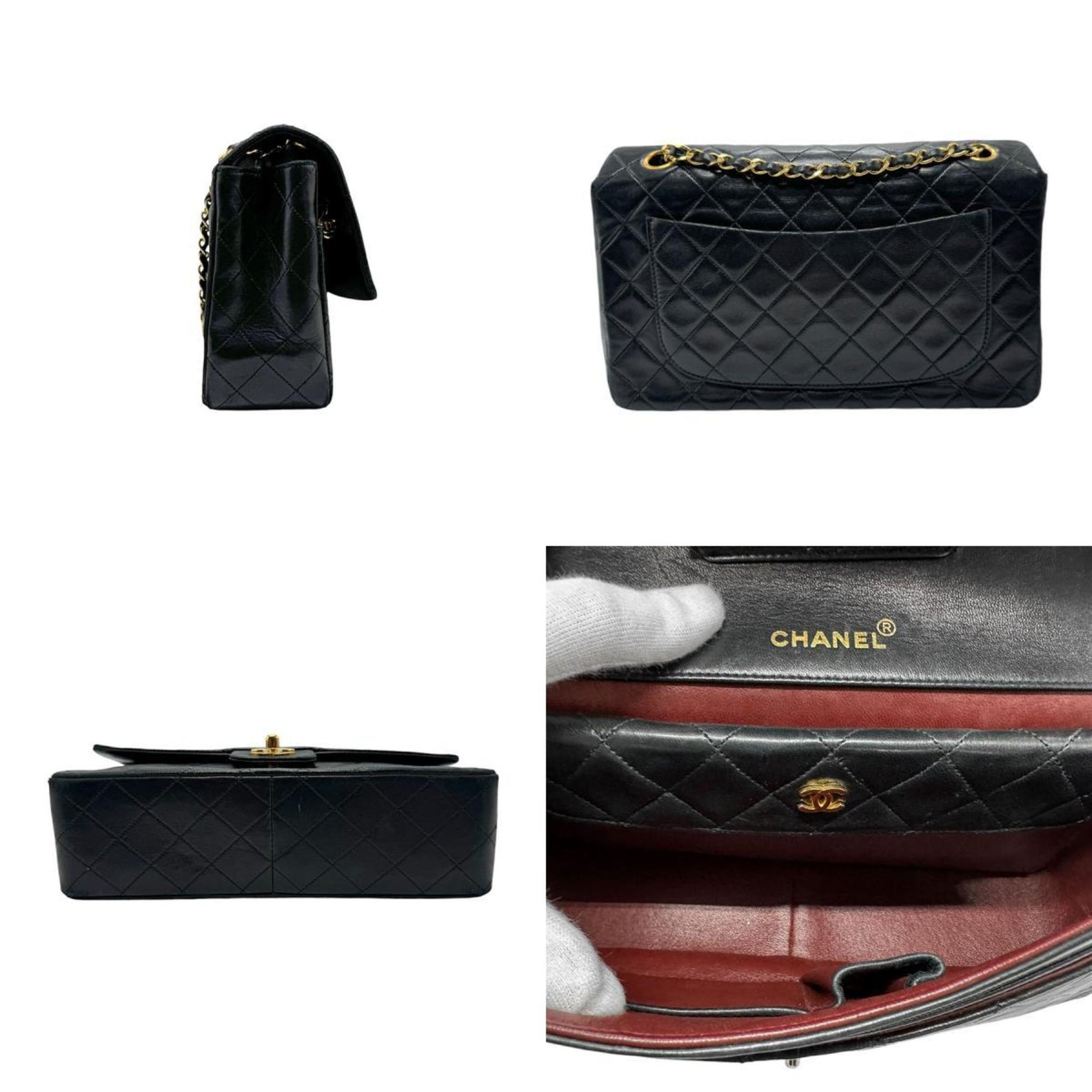 Chanel Shoulder Bag Lambskin Black Gold