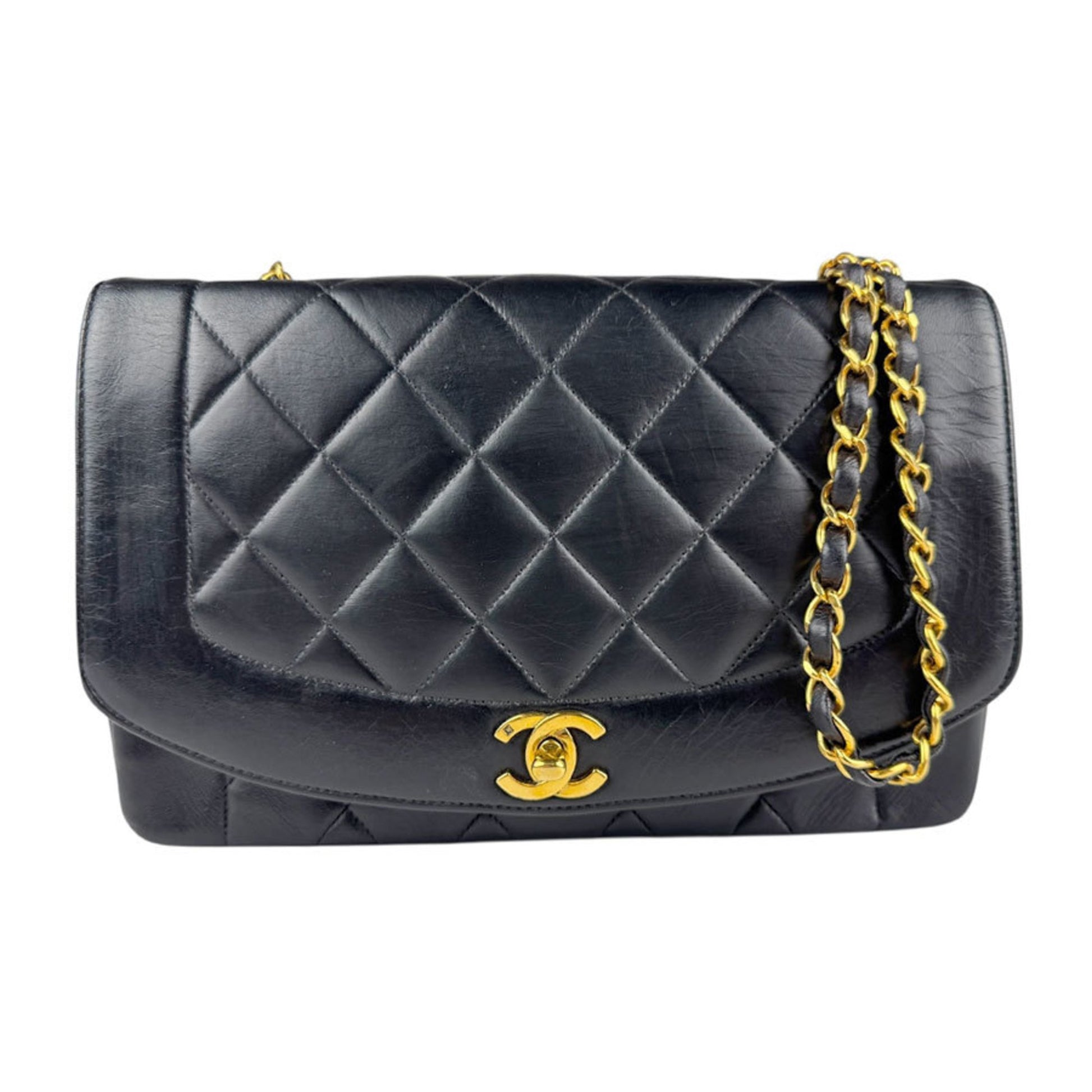 Chanel Shoulder Bag Matelasse Diana 25 Leather Black Gold