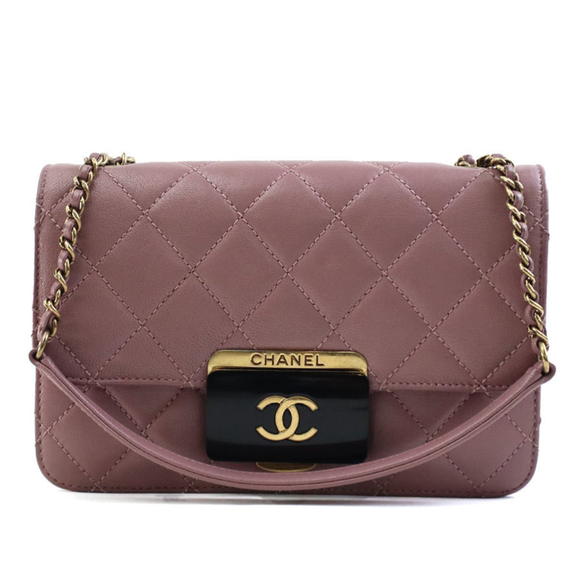 Chanel Shoulder Bag Matelasse Leather Dark Pink Gold