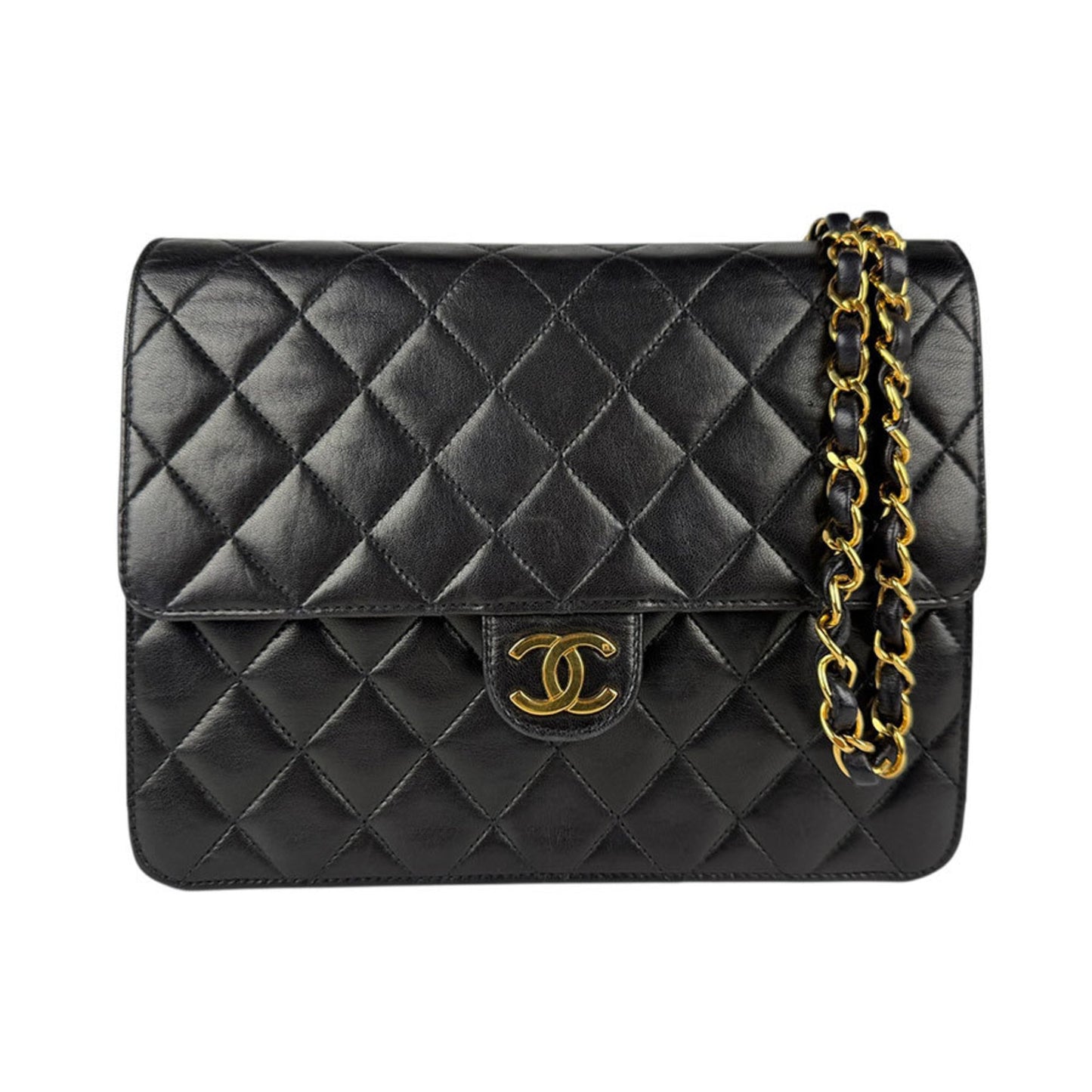 Chanel Shoulder Bag Matelasse Leather Metal Black Gold