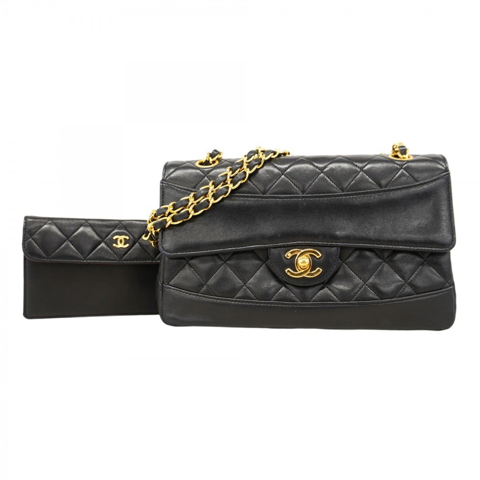 Chanel Shoulder Bag Matelasse W Chain Lambskin Black