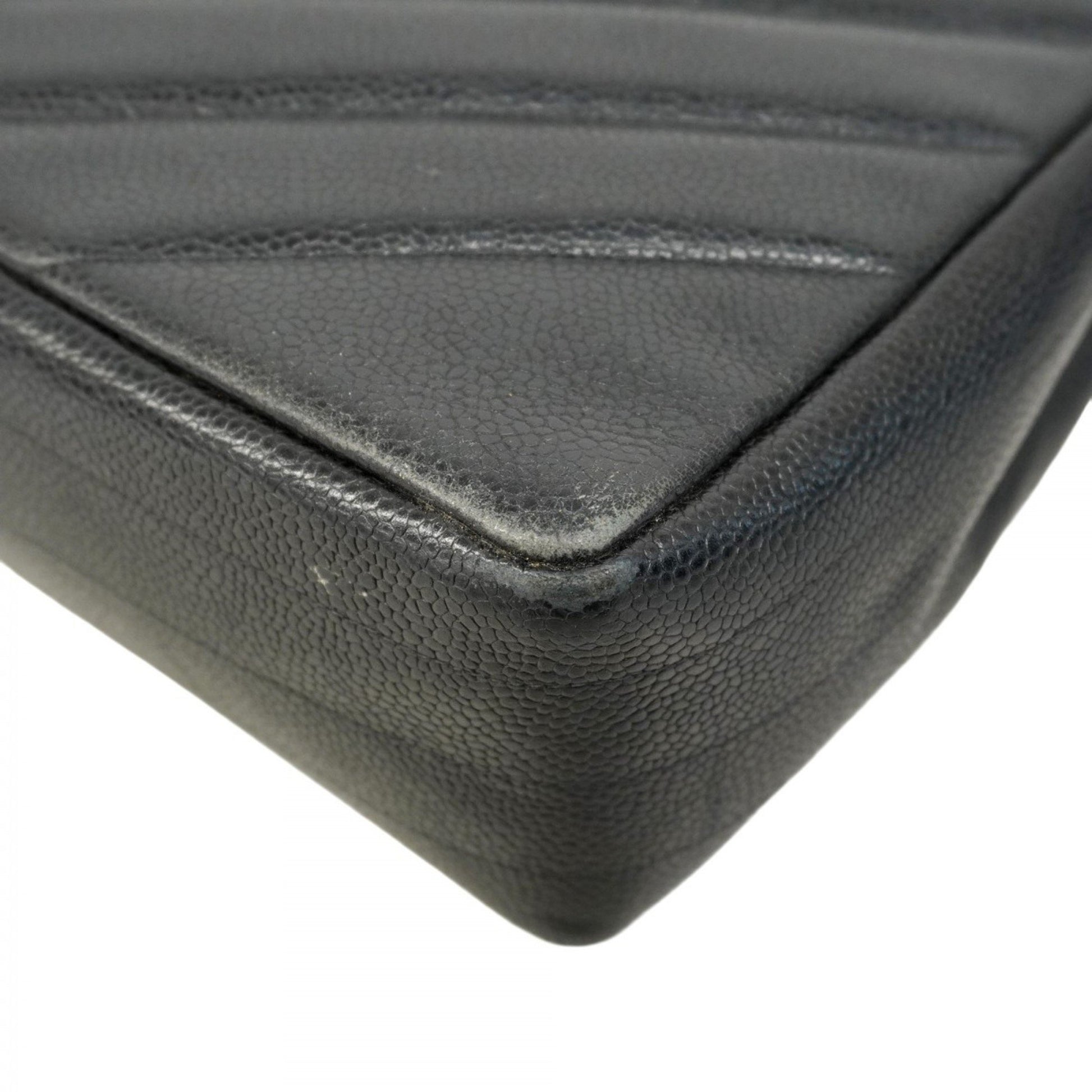 Chanel Shoulder Bag W Chain Bias Stitch Caviar Leather Black