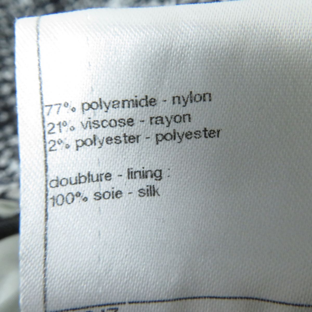 Material: Outer material: 77% nylon, Outer material: 21% rayon, Outer material: 2% polyester, Lining: 100% silk