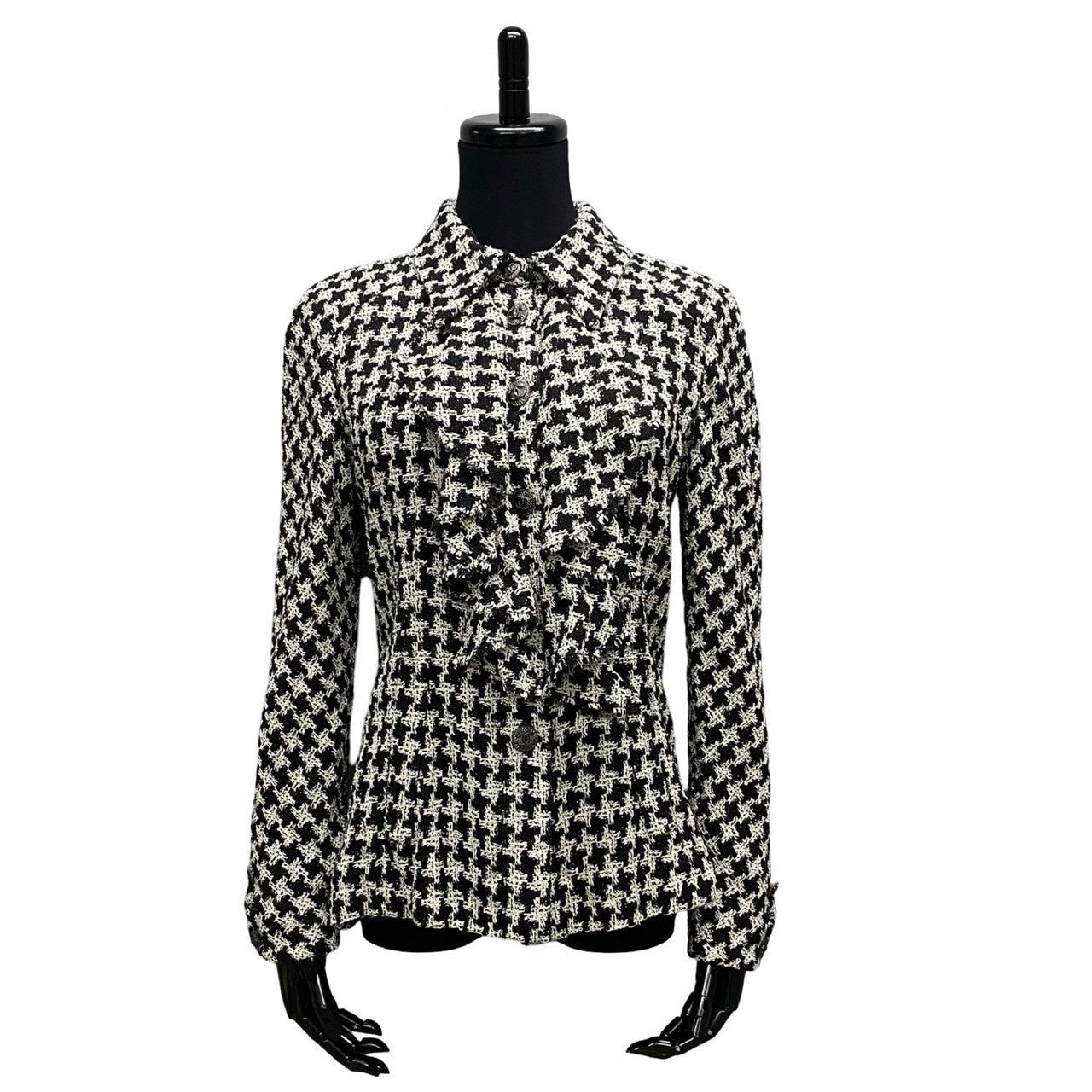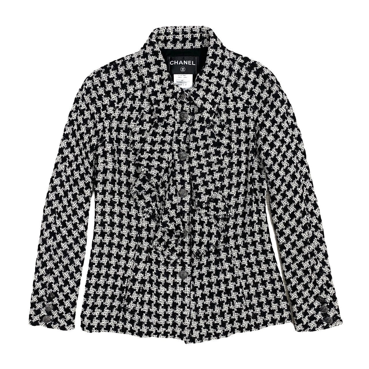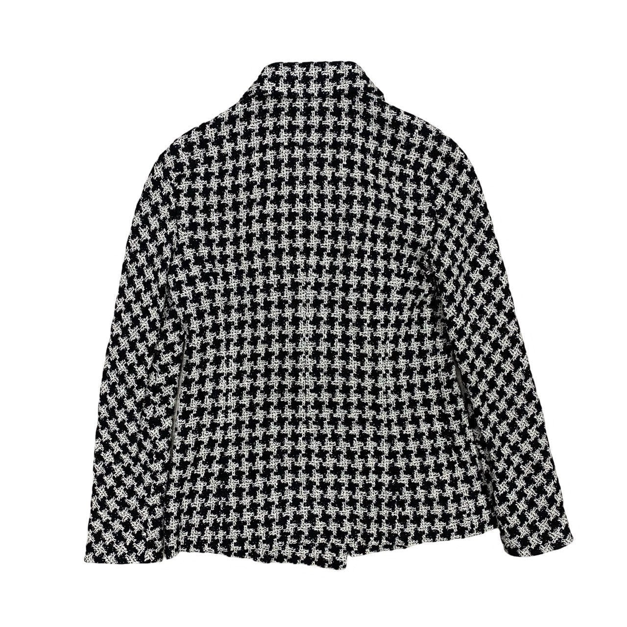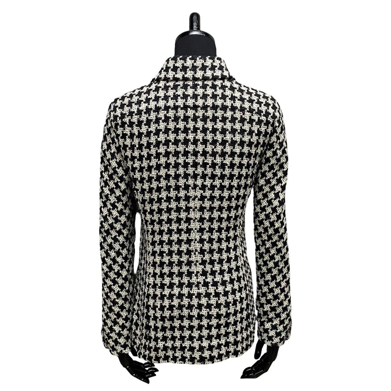 Chanel Tailored Jacket Silk, Metal White Coco Mark Houndstooth Pattern Women 36