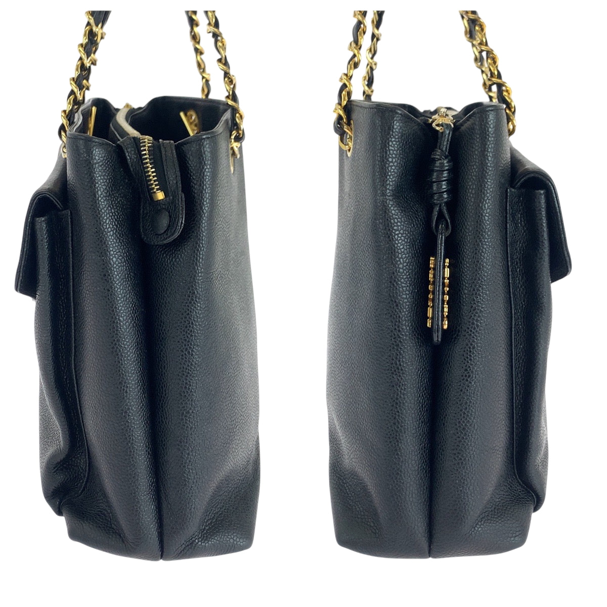 Chanel Tote Bag Caviar Skin Black Goldmetal Chain Tote Bag Shoulder Bag Coco Mark Women