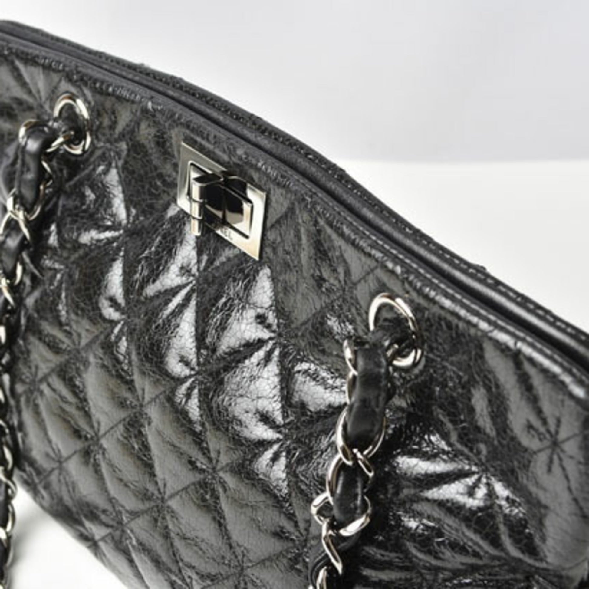 Chanel Tote Bag Chain Patent Leather Quilted Stitch Black