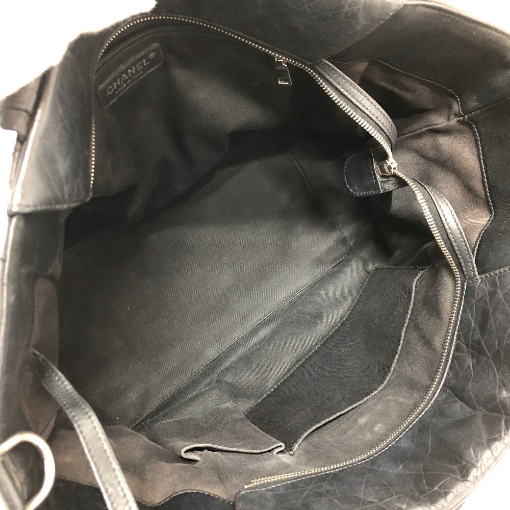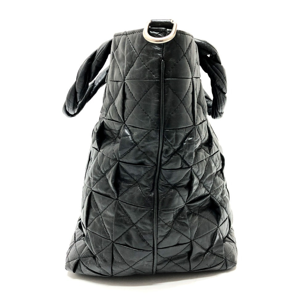 Chanel Tote Bag Leather Black Woven Shoulder Bag Cc Coco Mark Quilting Women