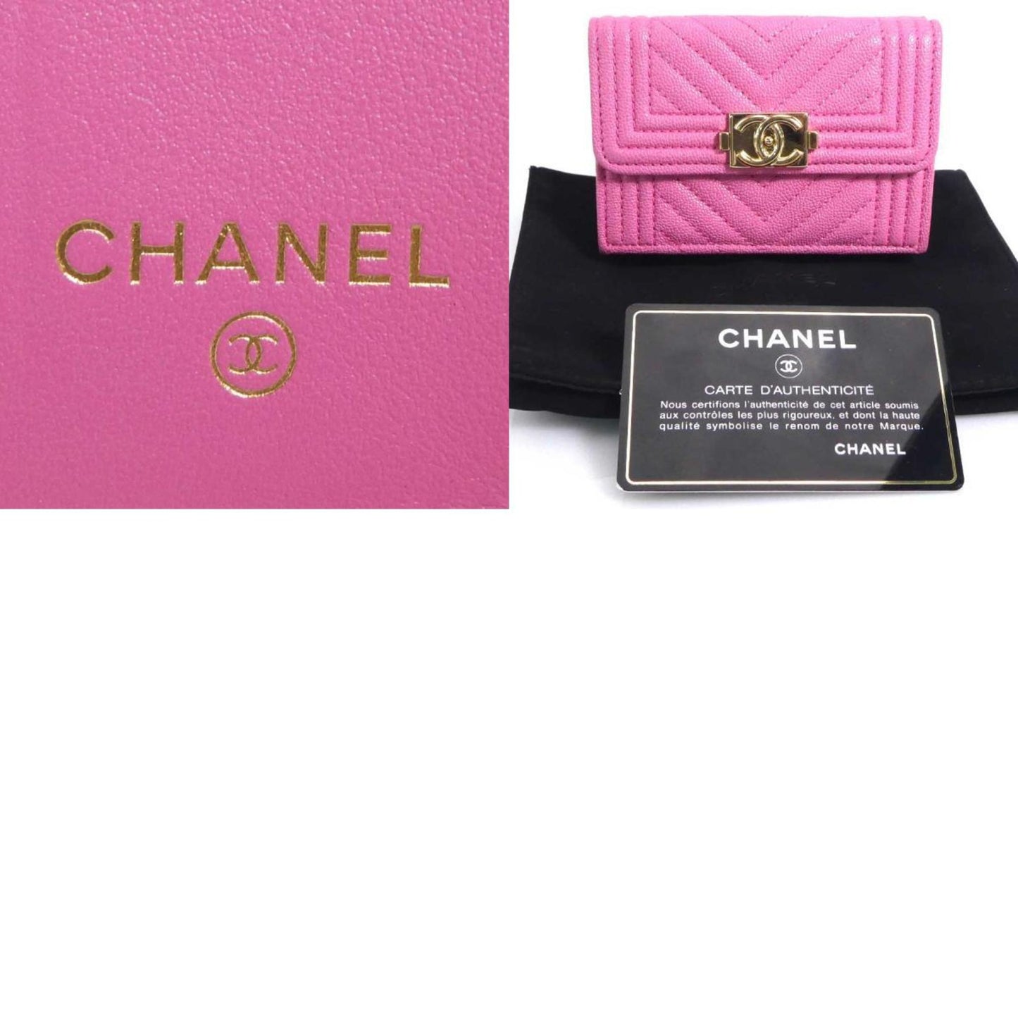 Chanel Tri-Fold Wallet Boy Chanel Caviar Skin Leather Pink Gold