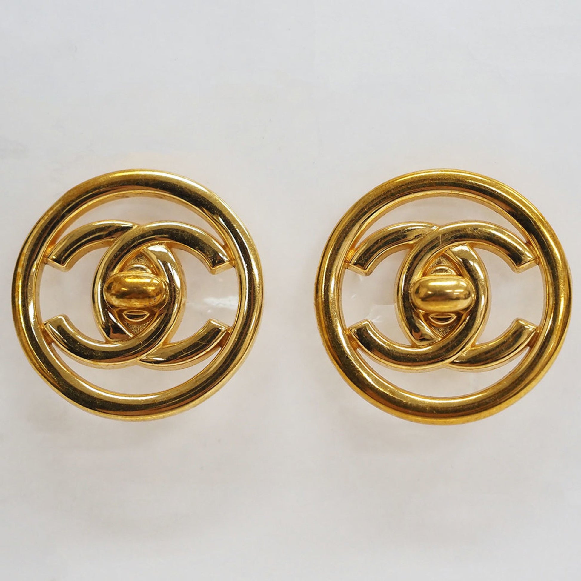 Chanel Turnlock Coco Round Earrings Gold Circle