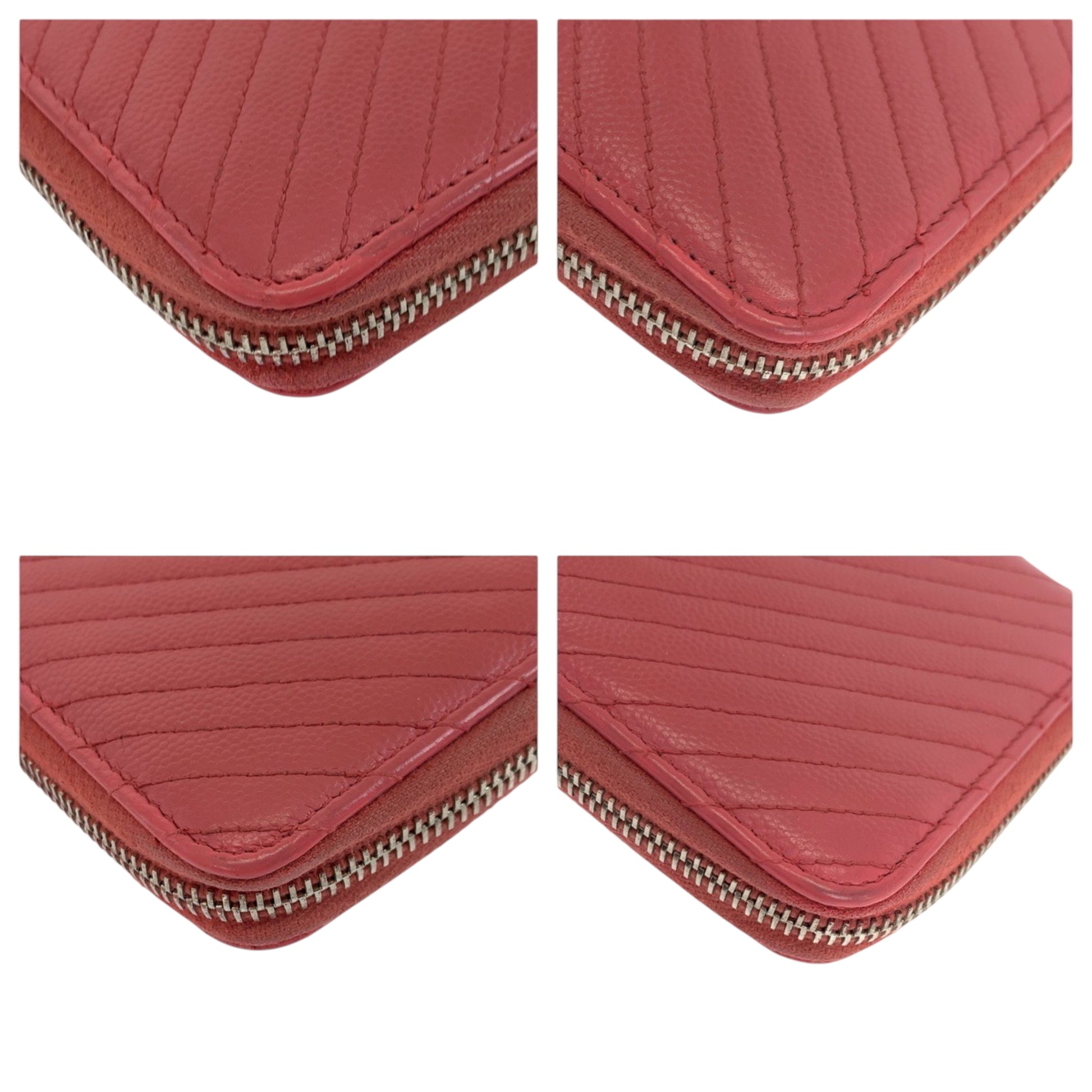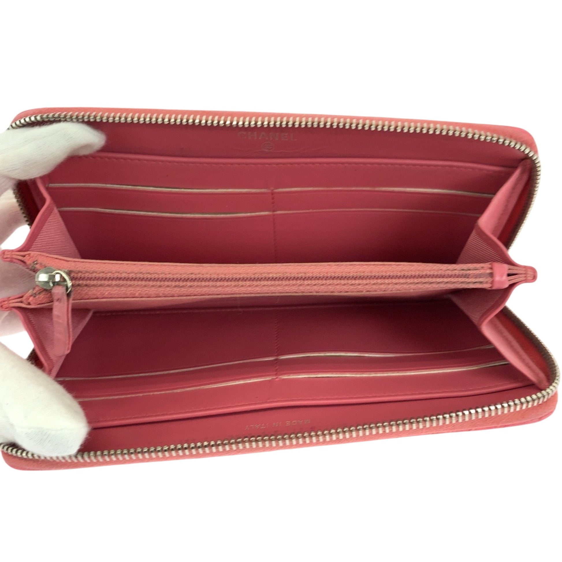 Chanel V Chevron Stitch Coco Mark Pink Gold Hardware Caviar Skin Long Wallet Round Zipper
