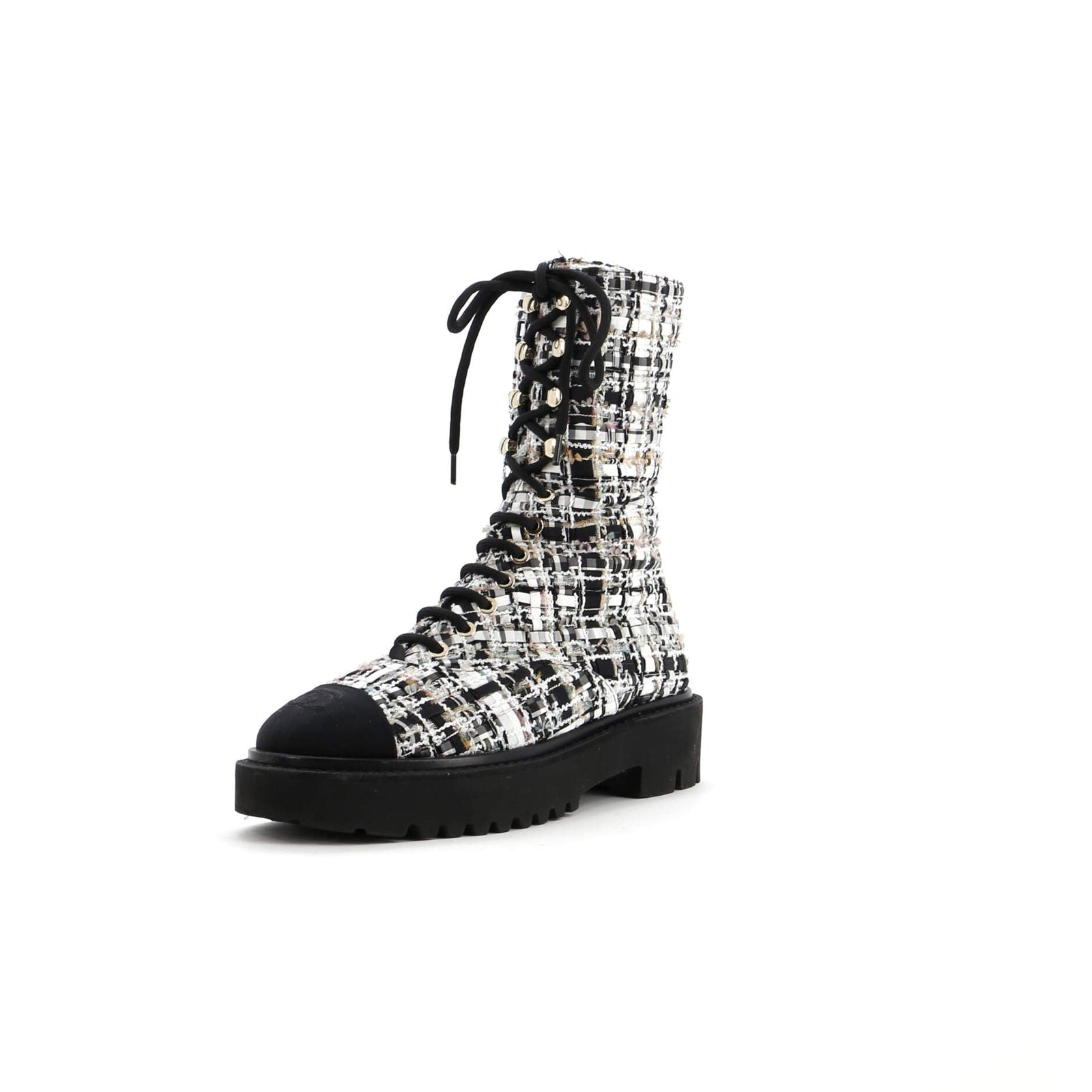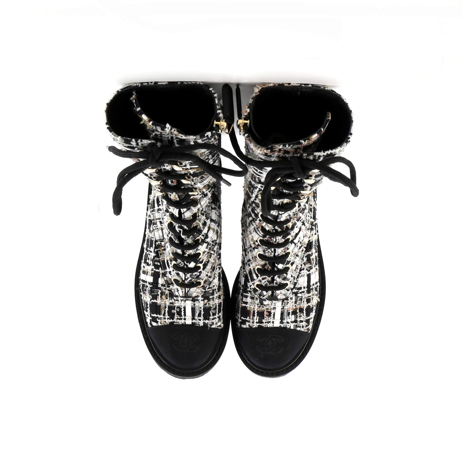 Chanel Women'S Cap Toe Combat Boots Tweed