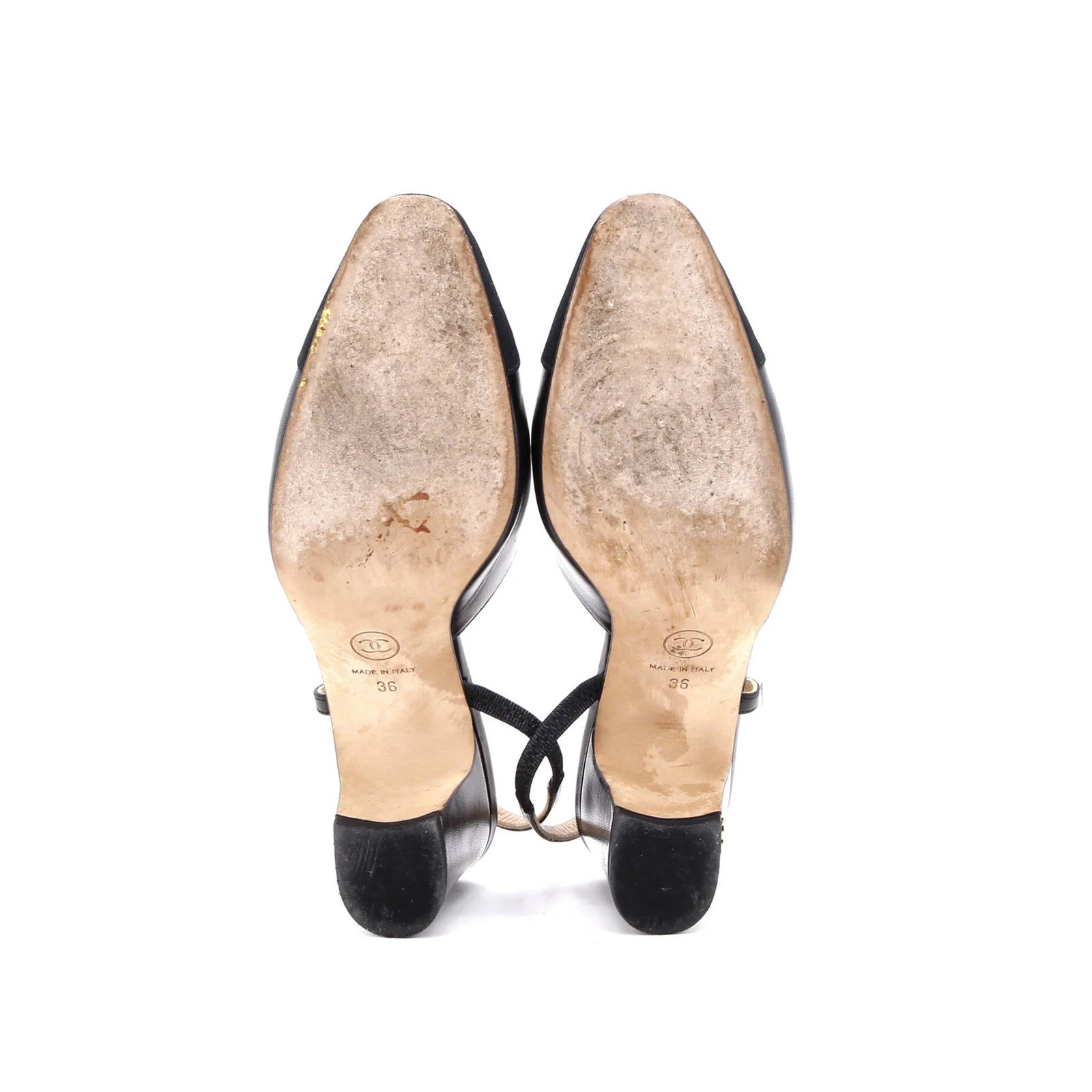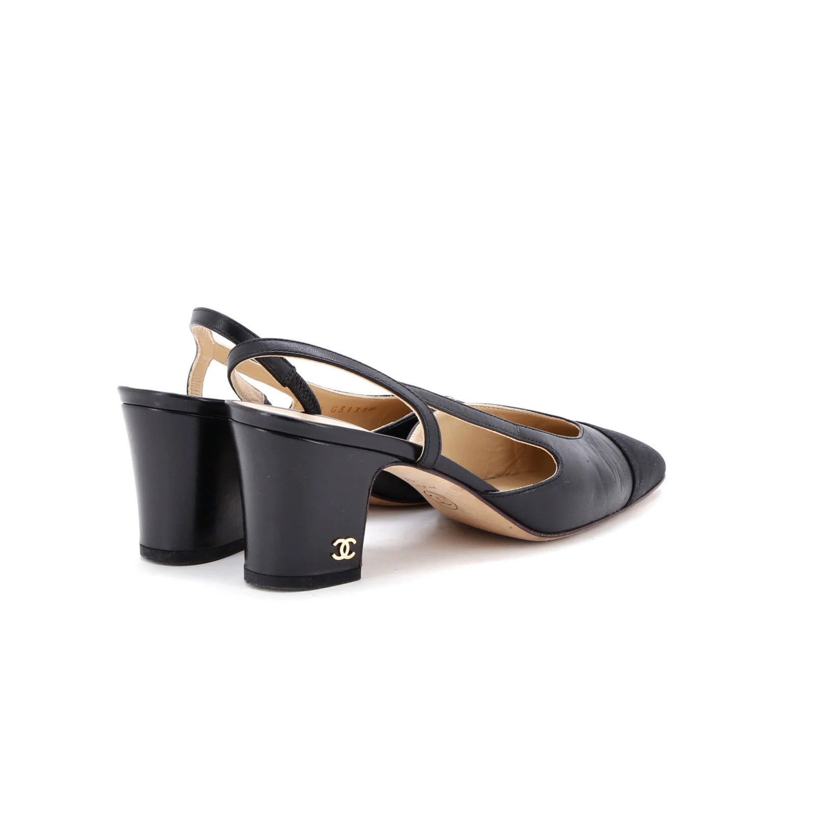 Chanel Womens Cap Toe Slingback Pumps Leather