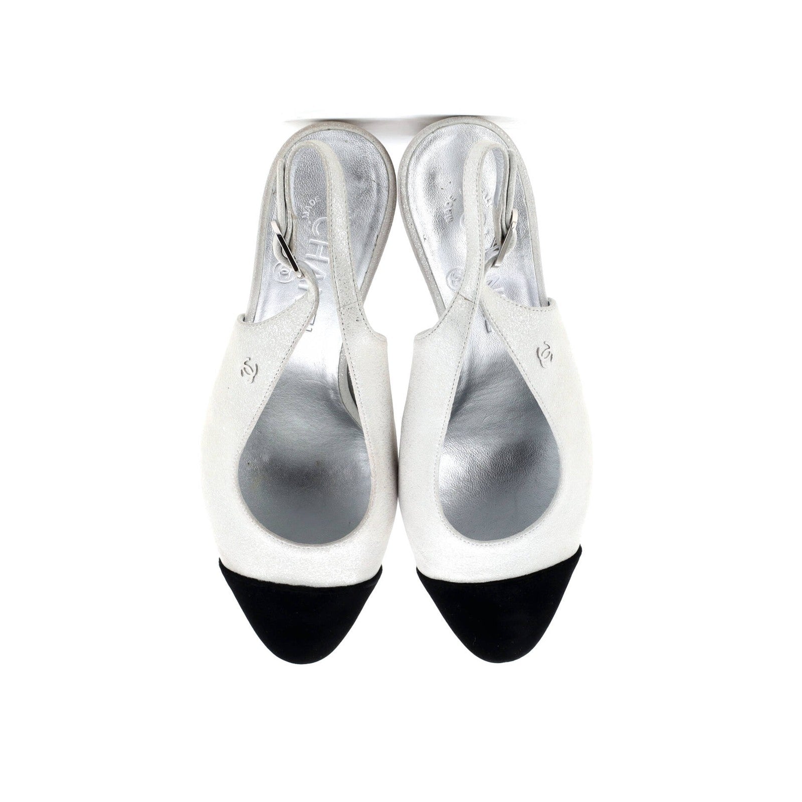 Chanel Womens Cap Toe Slingback Pumps Leather