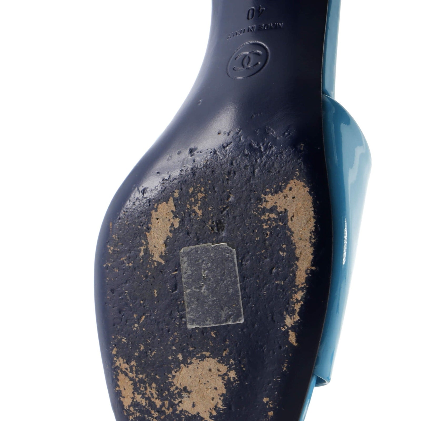 Chanel Women'S Cc Block Heeled Mule Sandals Patent