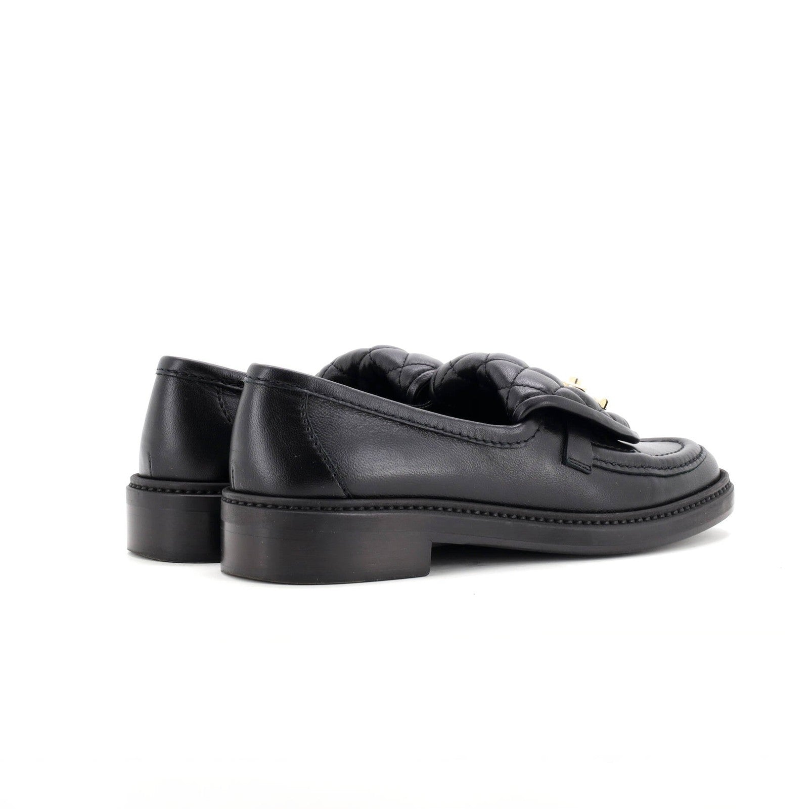 Condition: Very good. Odor in interior. Creasing throughout, marks in interior, moderate peeling, discoloration, scuffs, and indentations on outer soles, scratches on hardware.