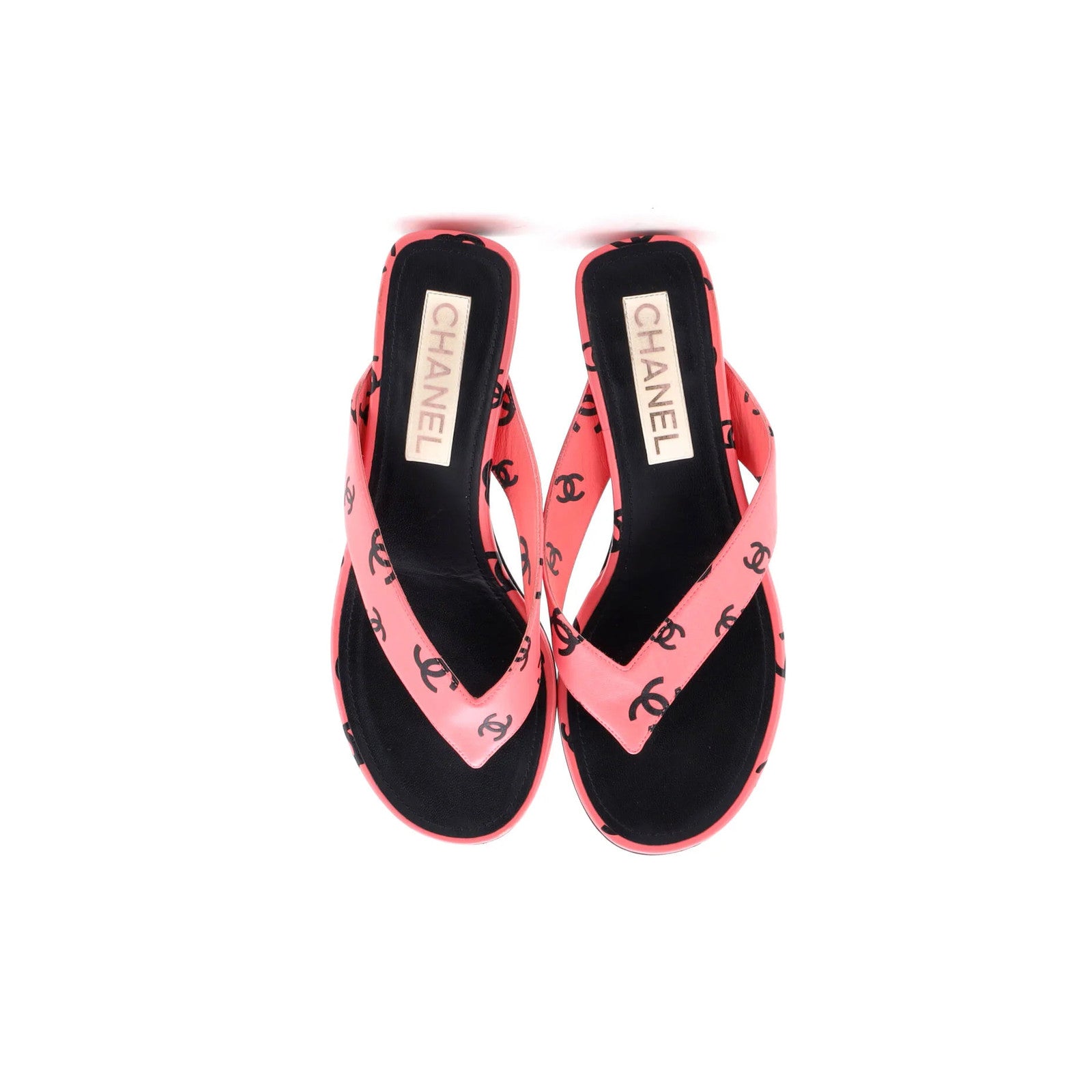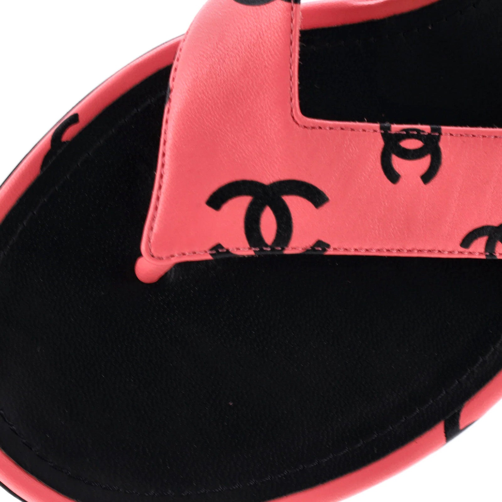 Chanel Women'S Cc Logo Thong Sandals Leather