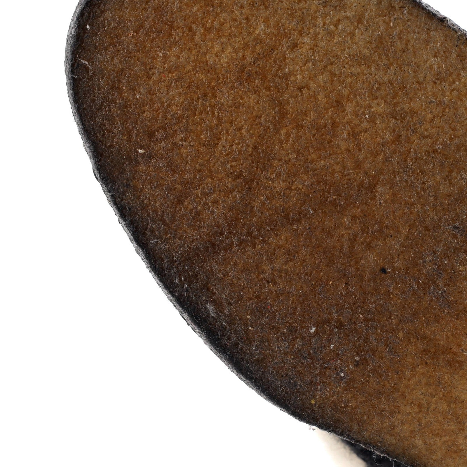 Condition: Very good. Minor odor in interior. Creasing and scuffs throughout, moderate darkening and marks on outer soles, scratches on hardware.