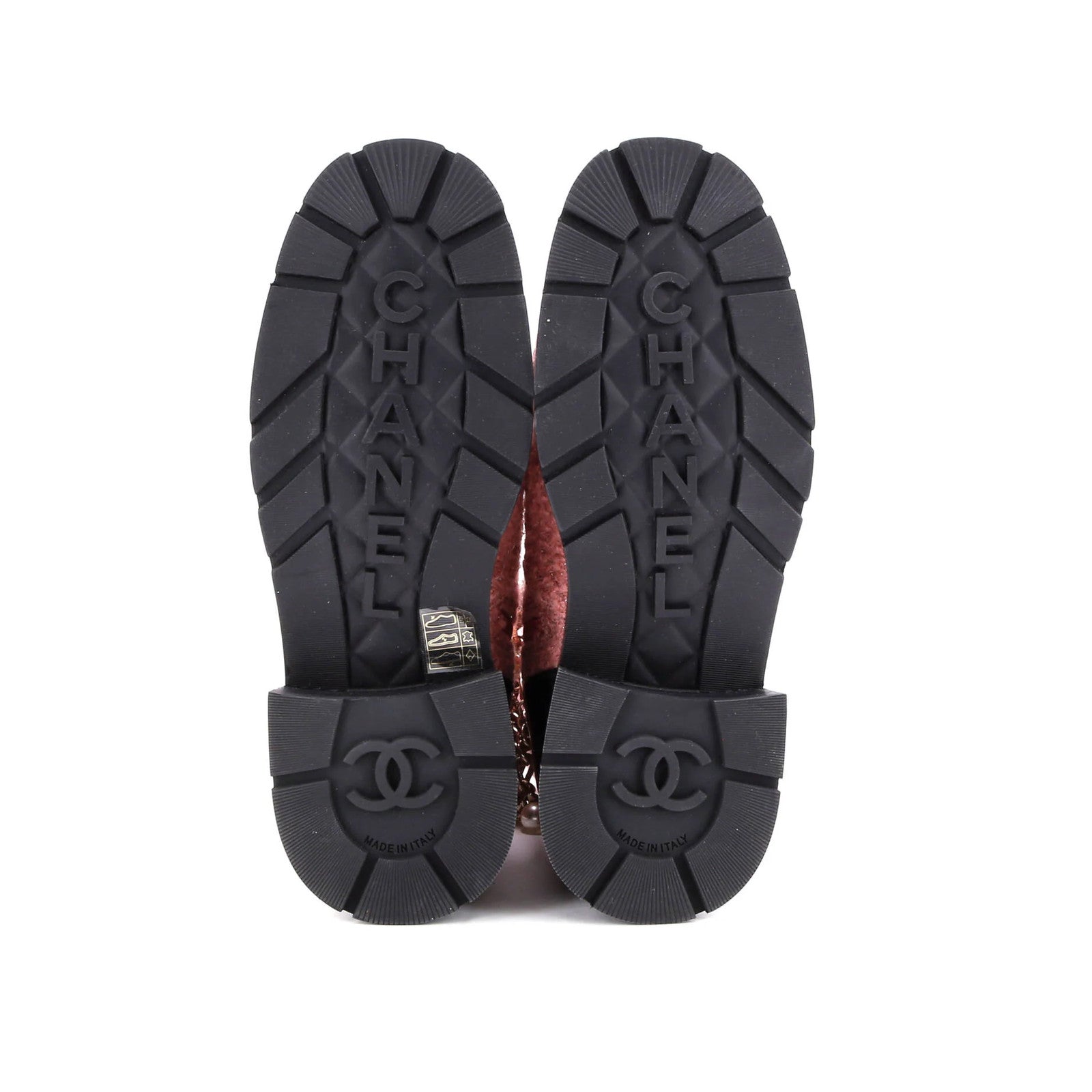 Chanel Women'S Charm Chain Cc Cap Toe Combat Boots Tweed And Leather
