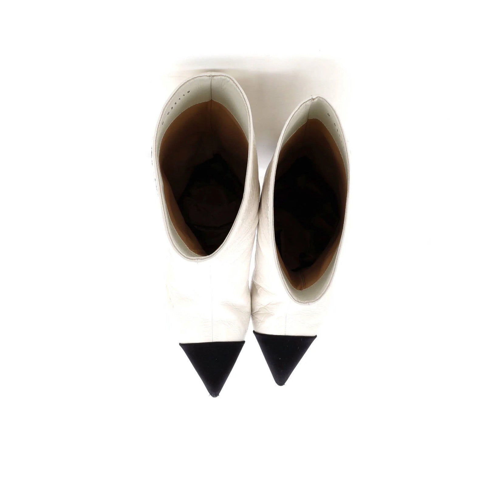 Condition: Very good. Creasing and scuffs throughout, runs on toecap, marks in interior, peeling, discoloration, scuffs, and indentations on outer soles.