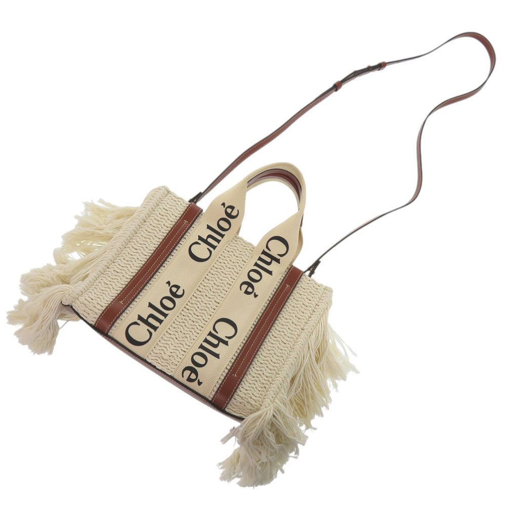 Chloe Handbag Chc22Ss397 Leather Beige Woody Medium Tote Bag