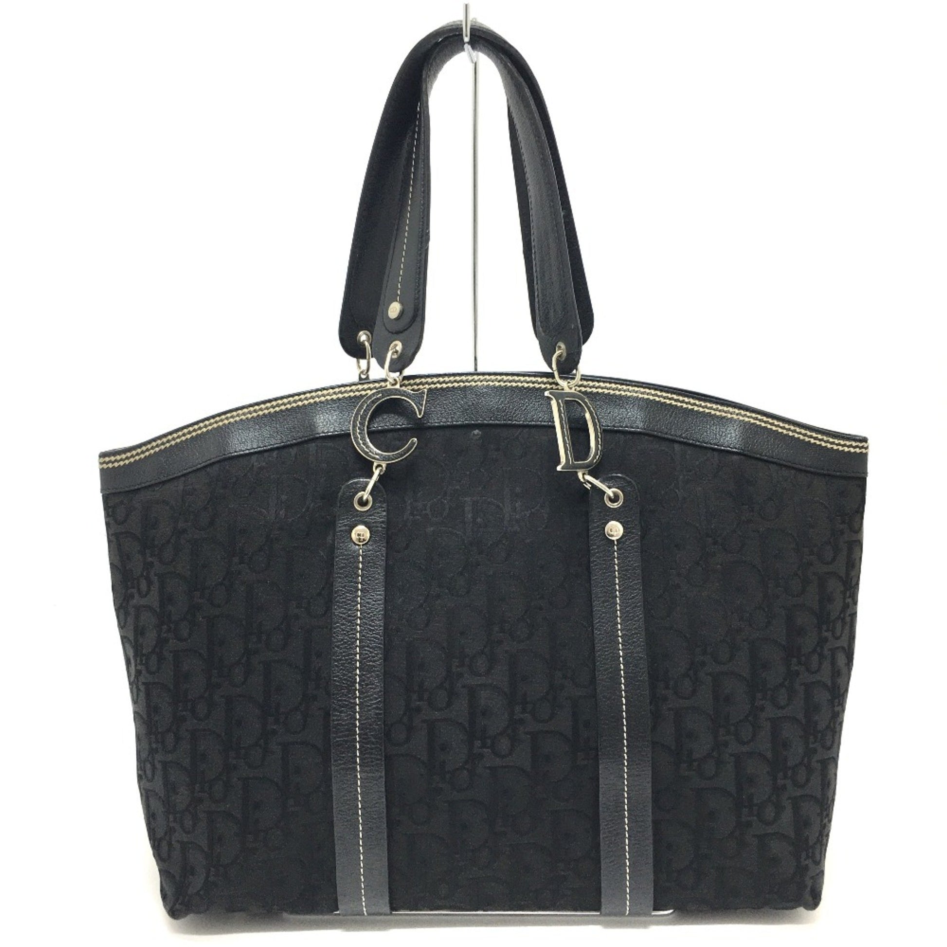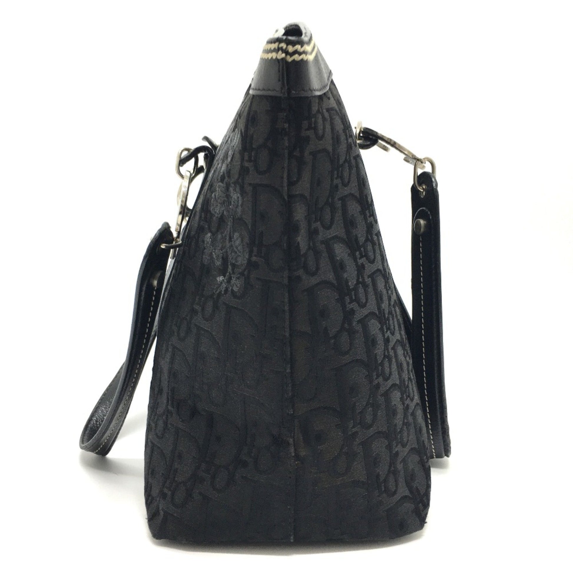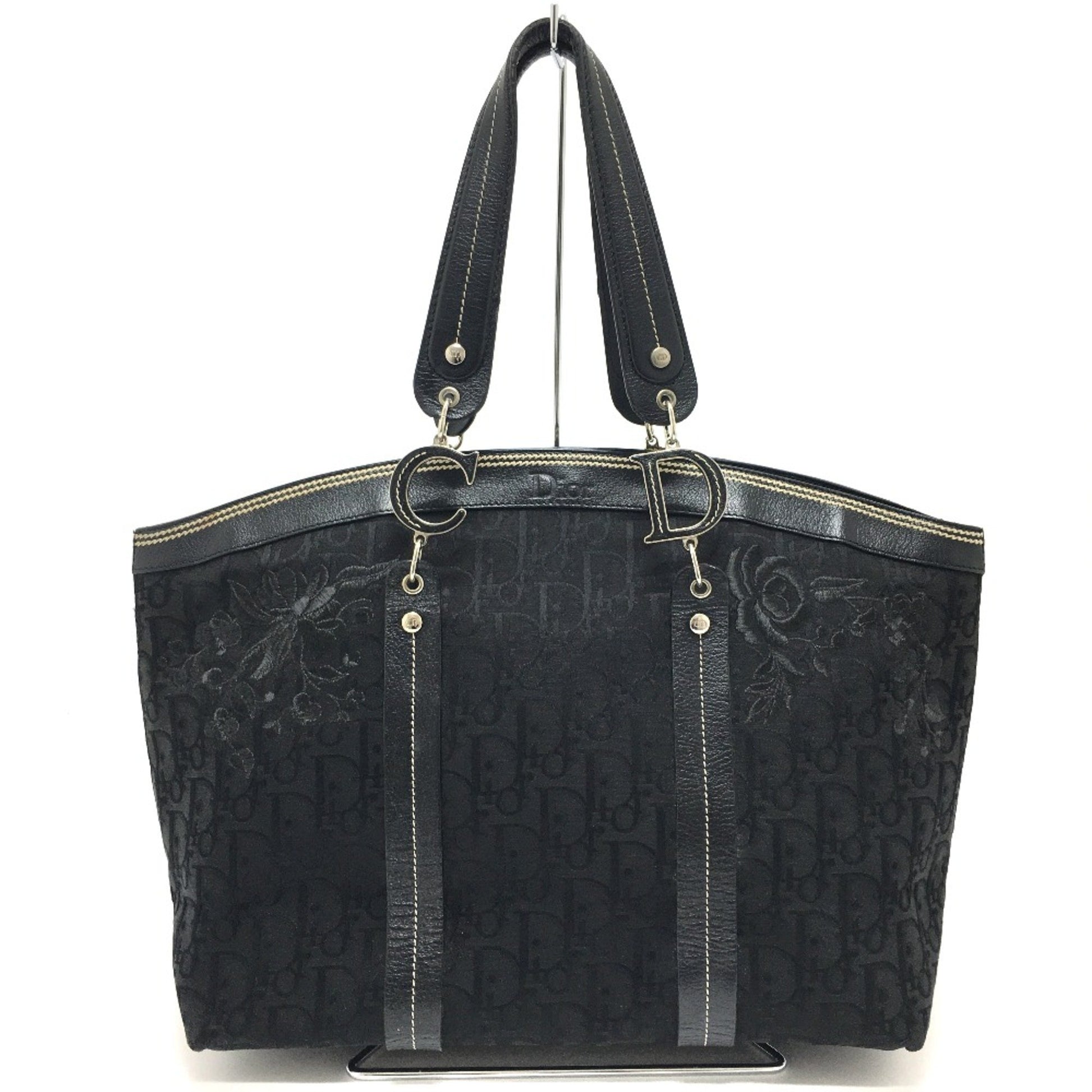 Christian Christian Dior Flower Embroidery Bag Shawl Tote Bag Black
