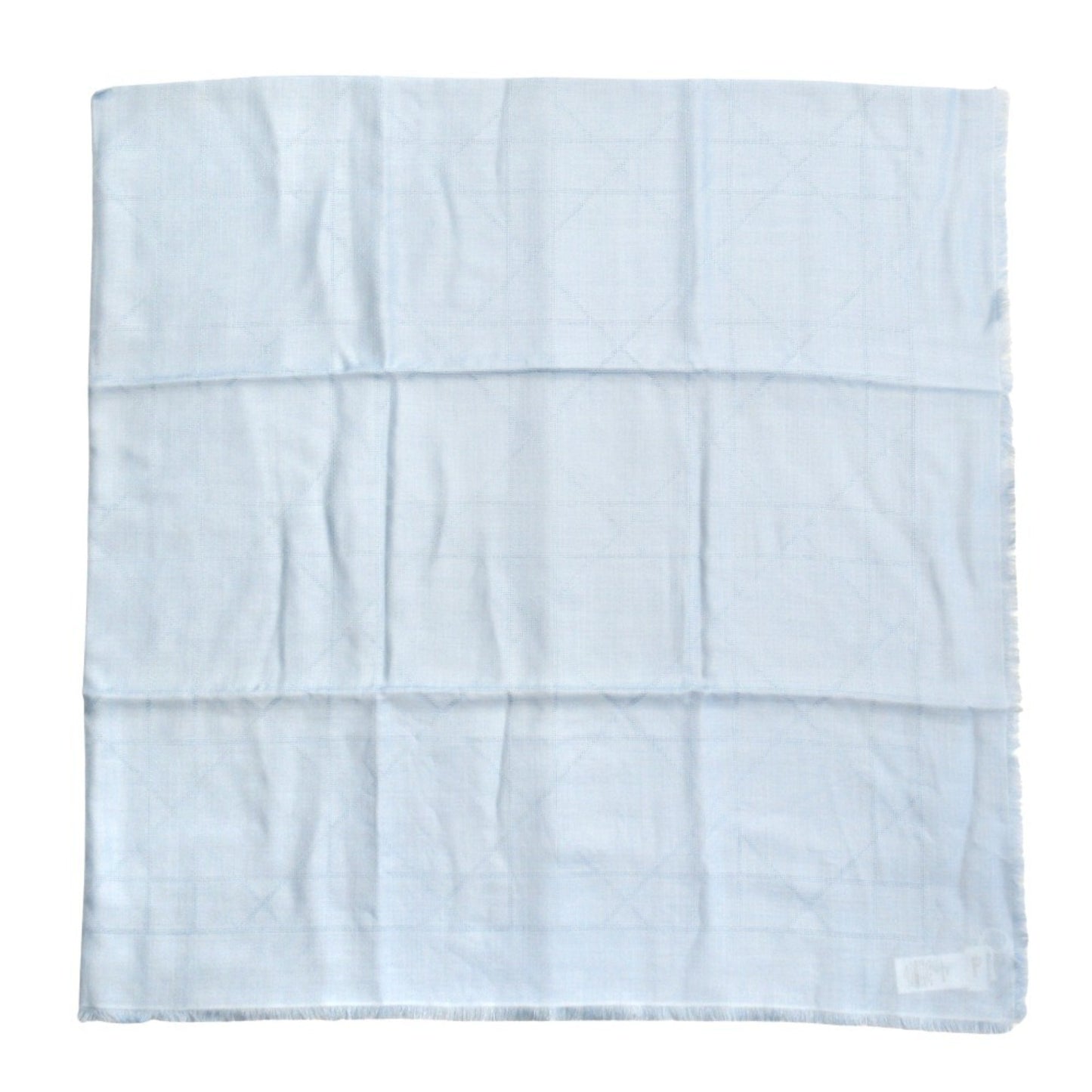 Christian Dior Cannage Jacquard Large Stole/Scarf Shawl Silk Cashmere Blend Logo Blue