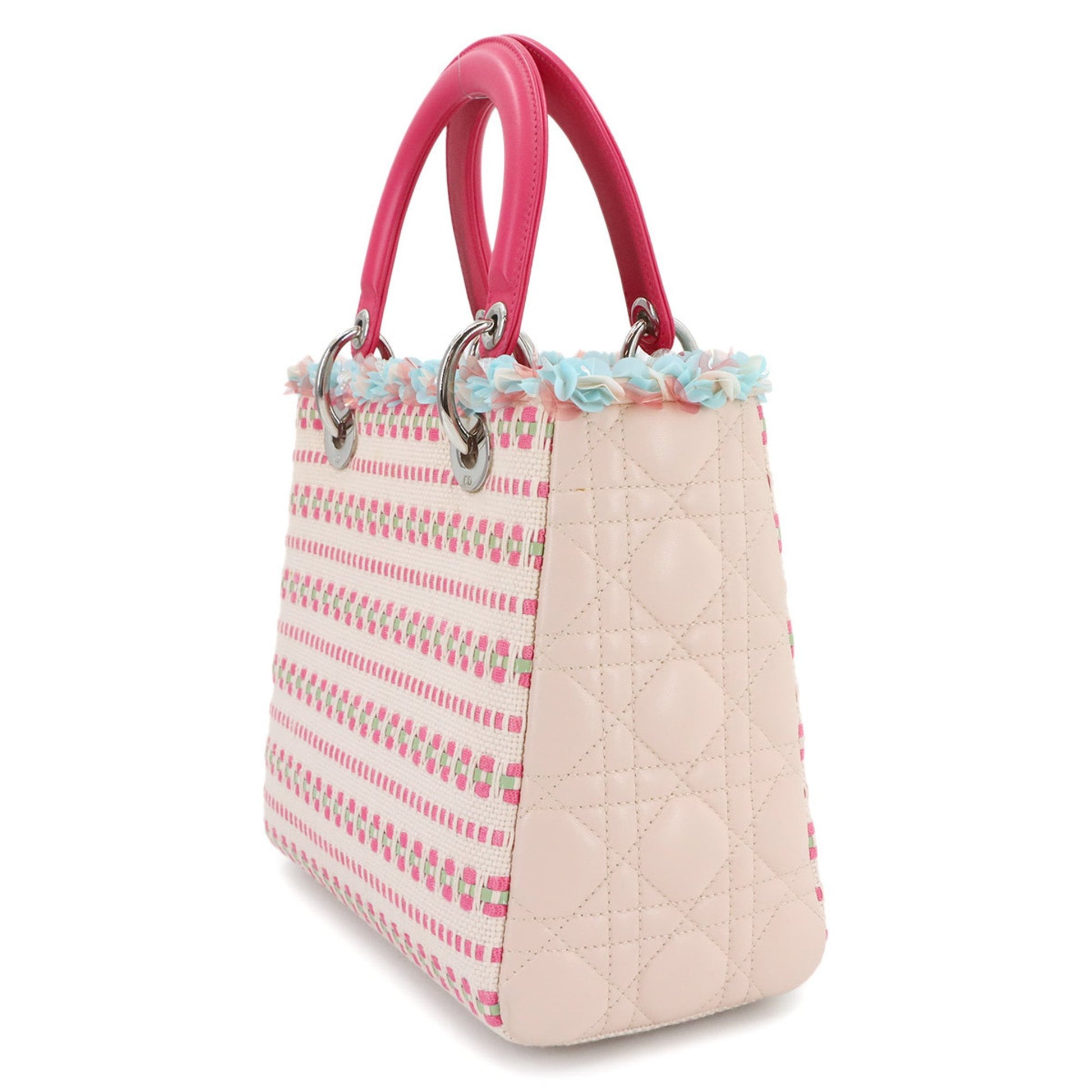Christian Dior Cannage Lady Medium 2-Way Hand/Shoulder Bag In Tweed Canvas And Leather
