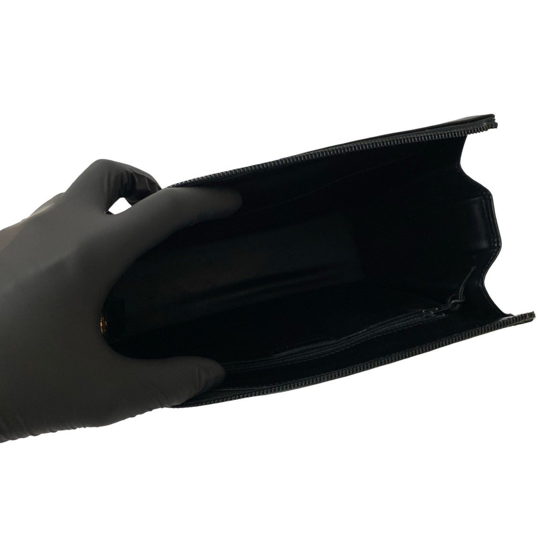 Christian Dior Cd Logo Hardware Genuine Leather Shoulder Bag Pochette Black 39594