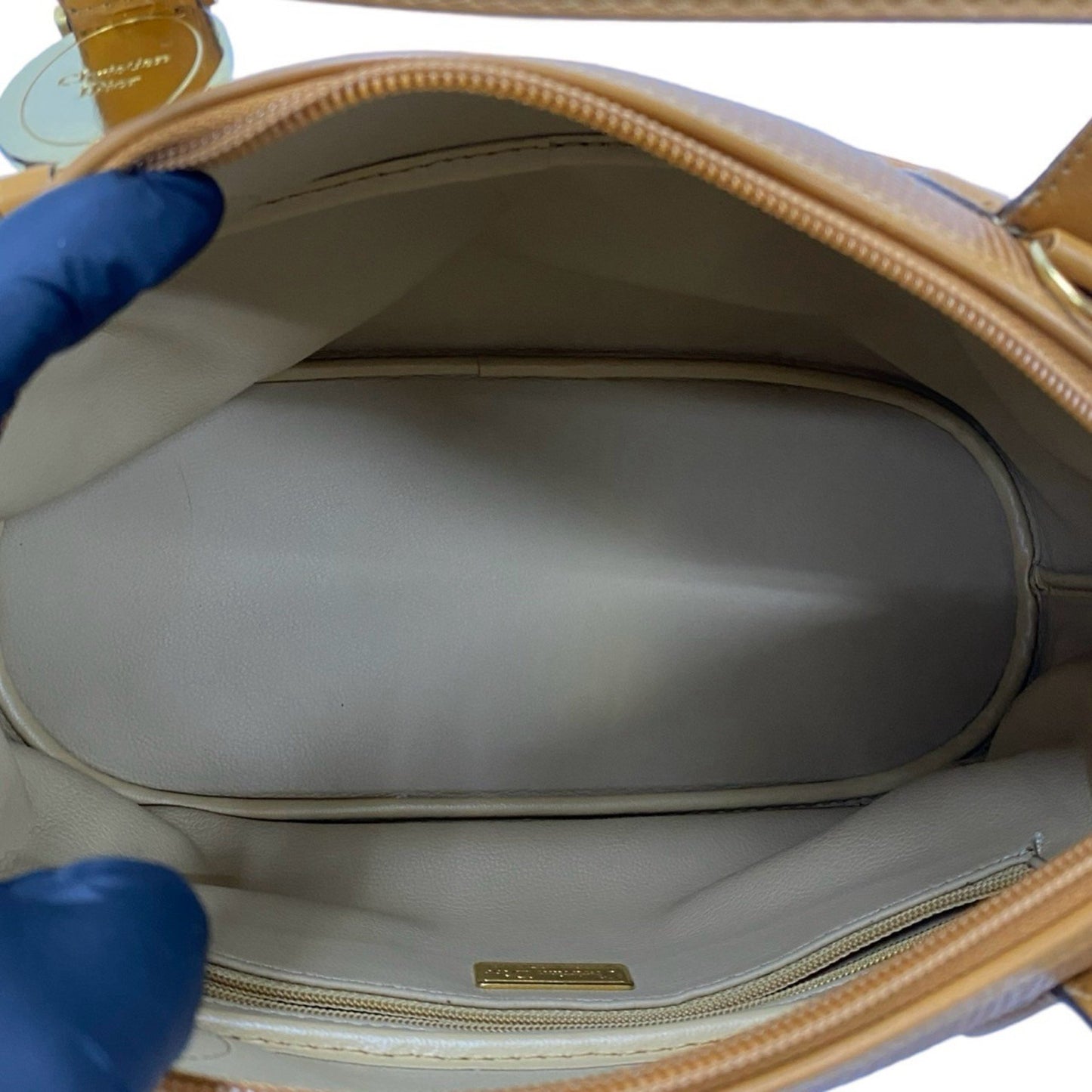 Christian Dior Cd Logo Hardware Leather Handbag/Boston Bag In Camel