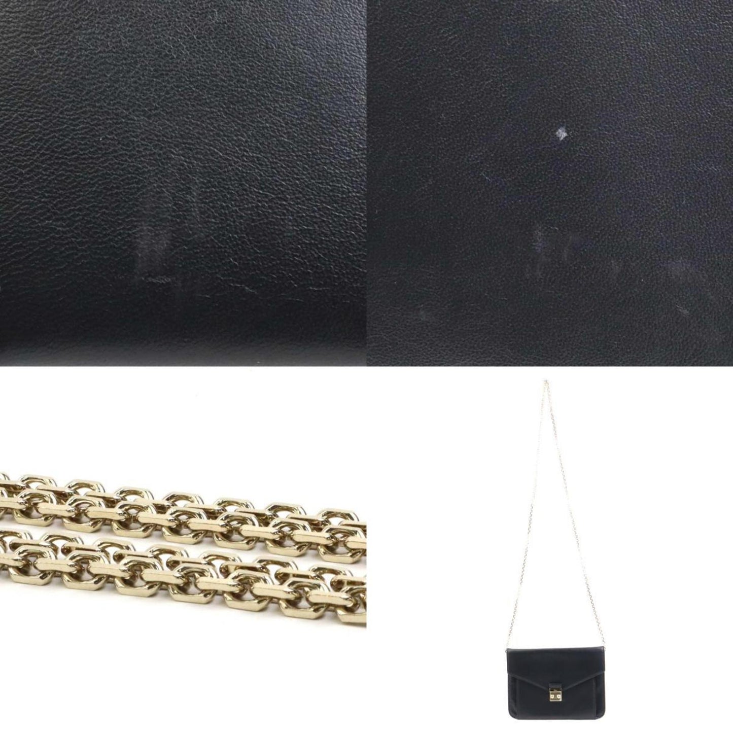 Christian Dior Chain Wallet Clutch Bag Leather Black