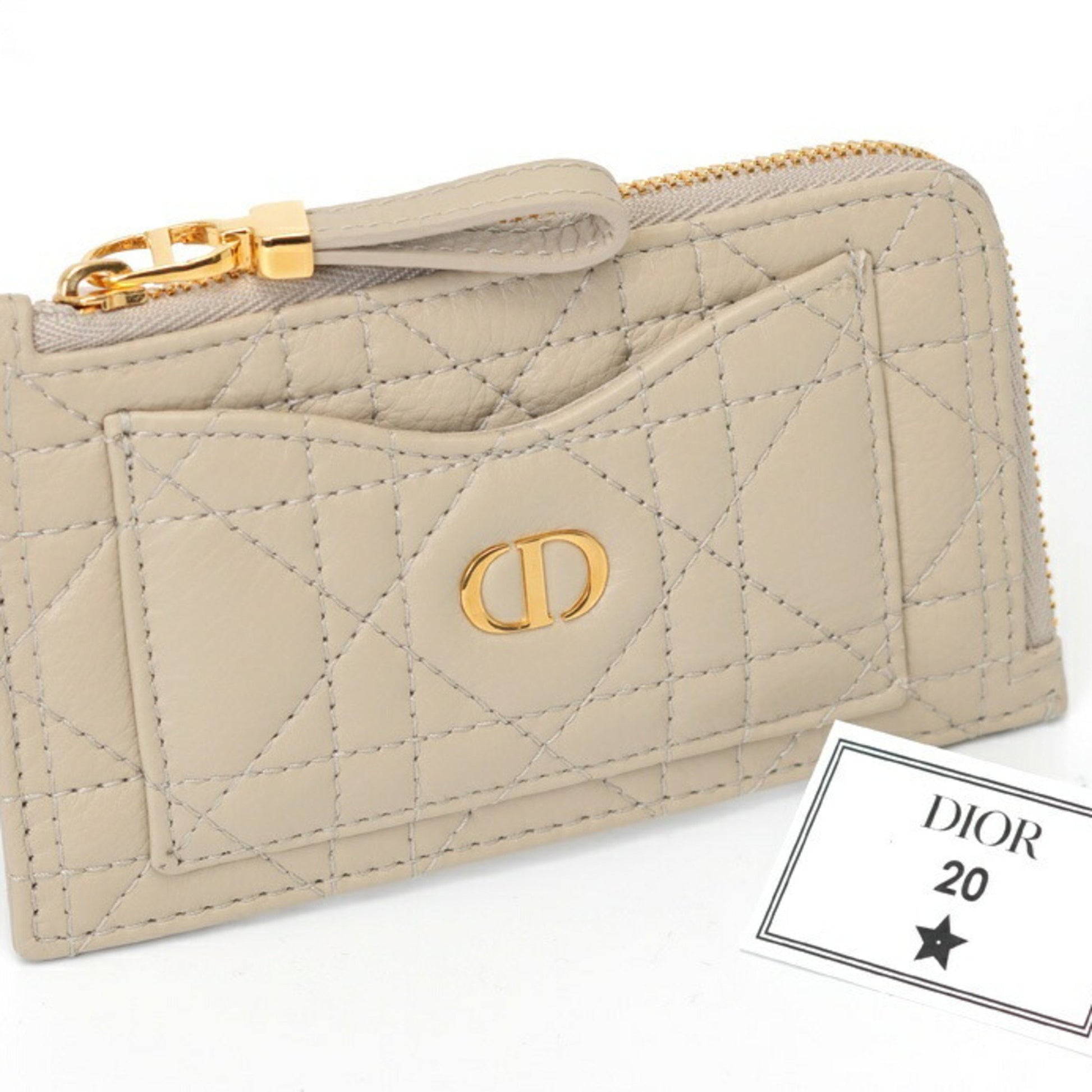 Christian Dior Dior Caro Cosmos Zip Card Holder Case S5131Uwhc_M116 Cannage Calfskin Beige K-157764