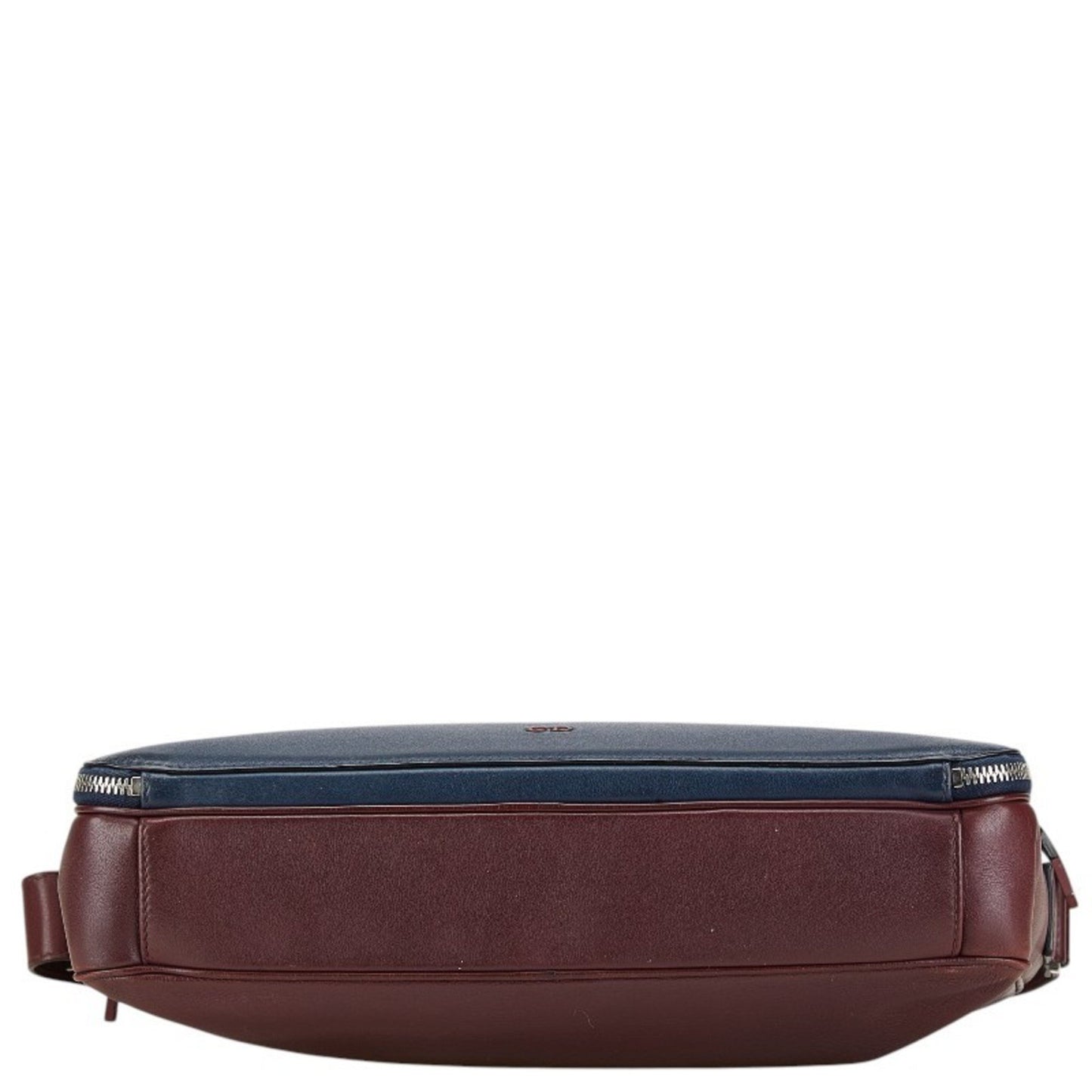 Christian Dior Dior Cd Logo Shoulder Bag Navy Wine Red Leather