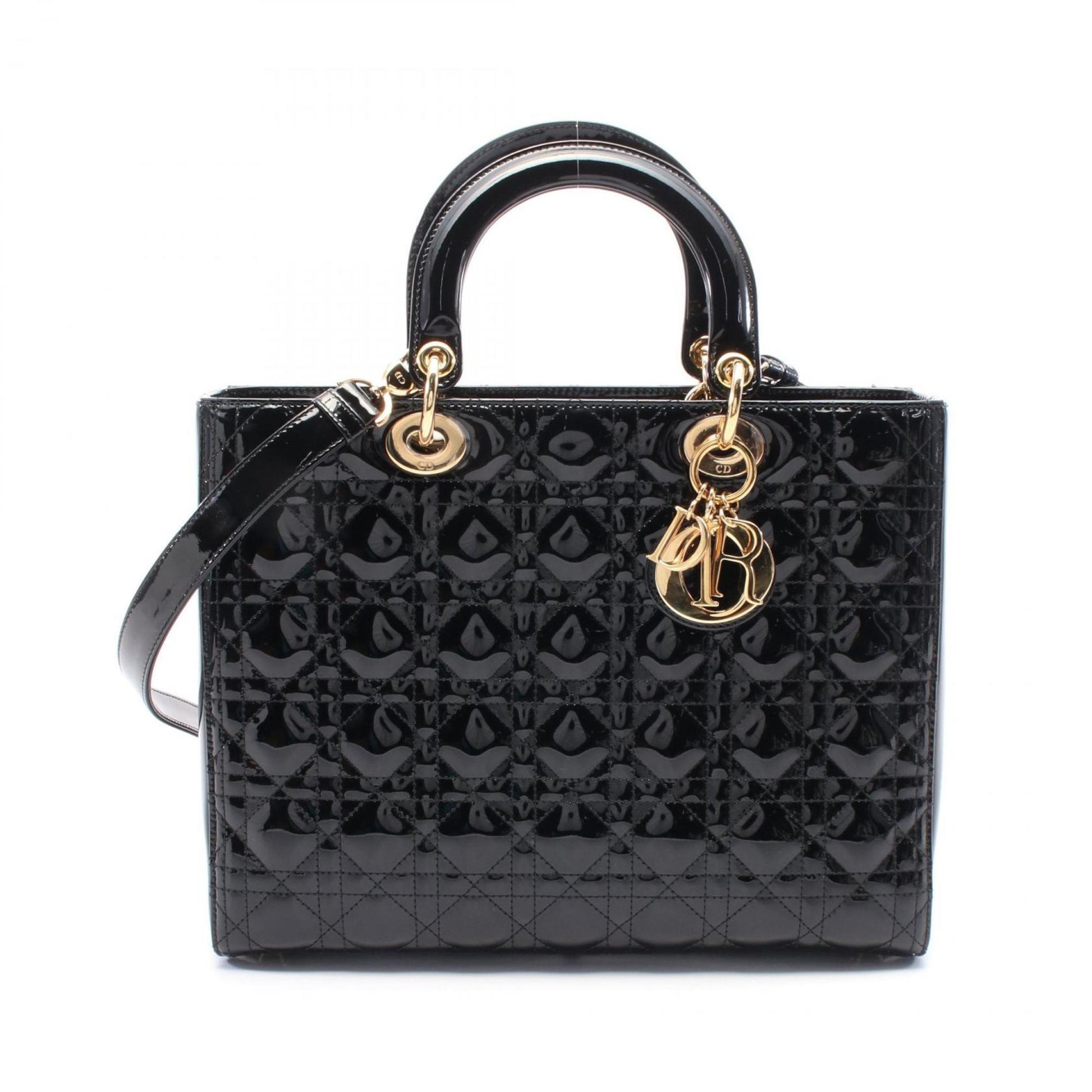 Christian Dior Dior Lady Large Cannage Handbag Patent Leather