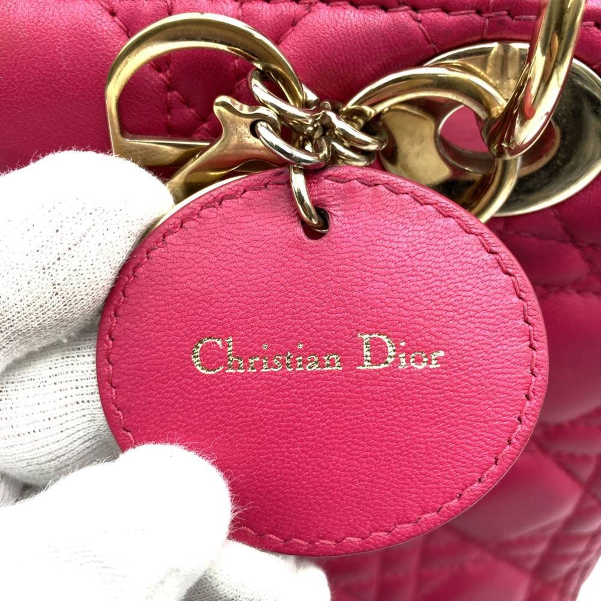 Christian Dior Dior Lady Medium 2Way Shoulder Bag Handbag Leather Pink