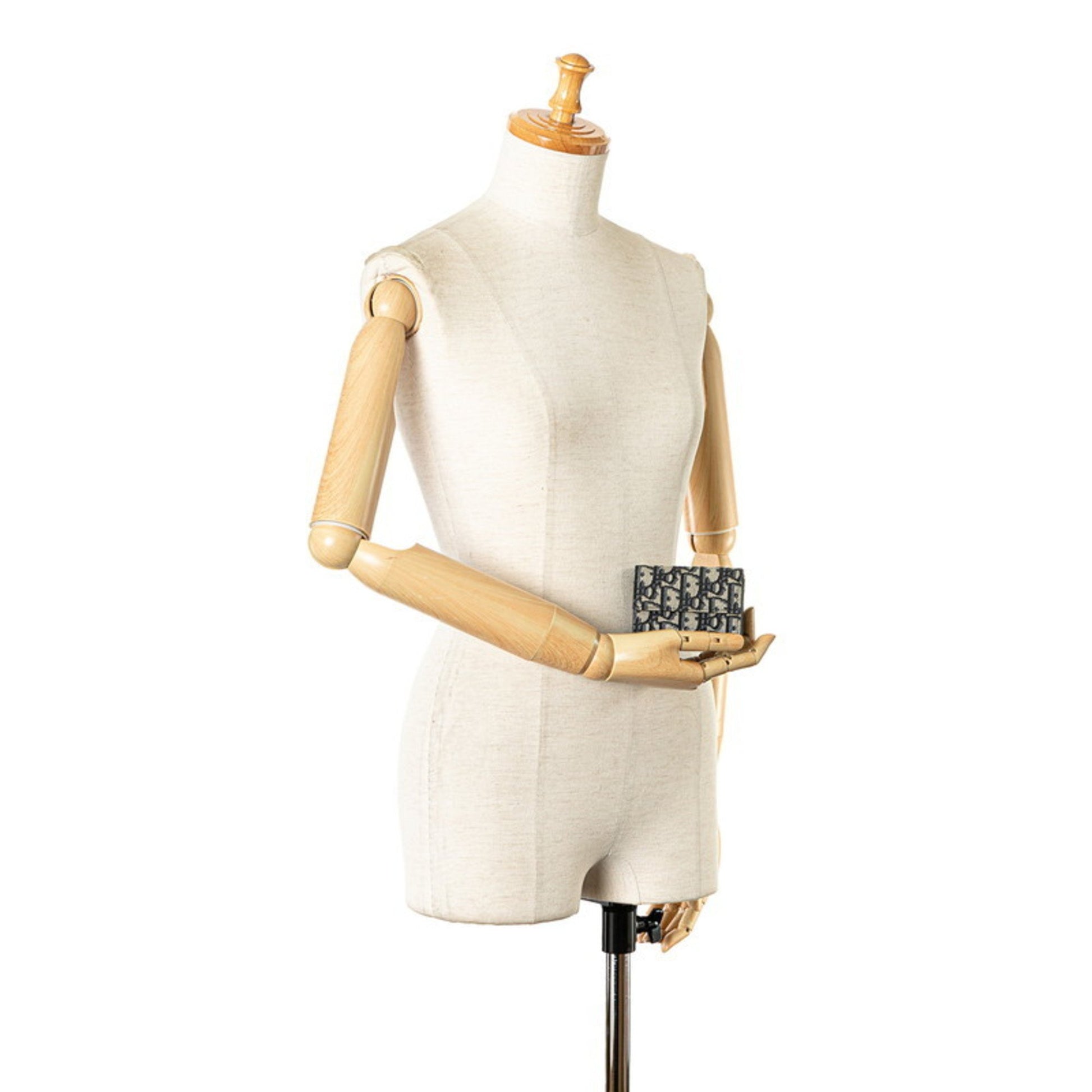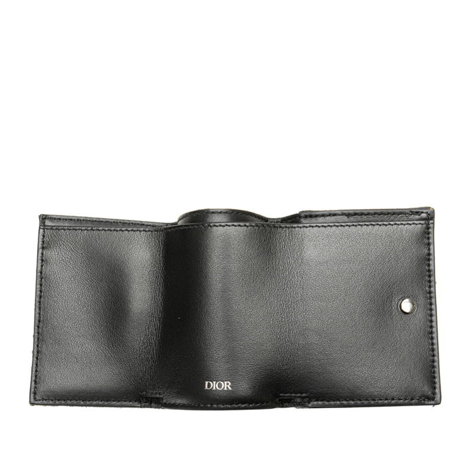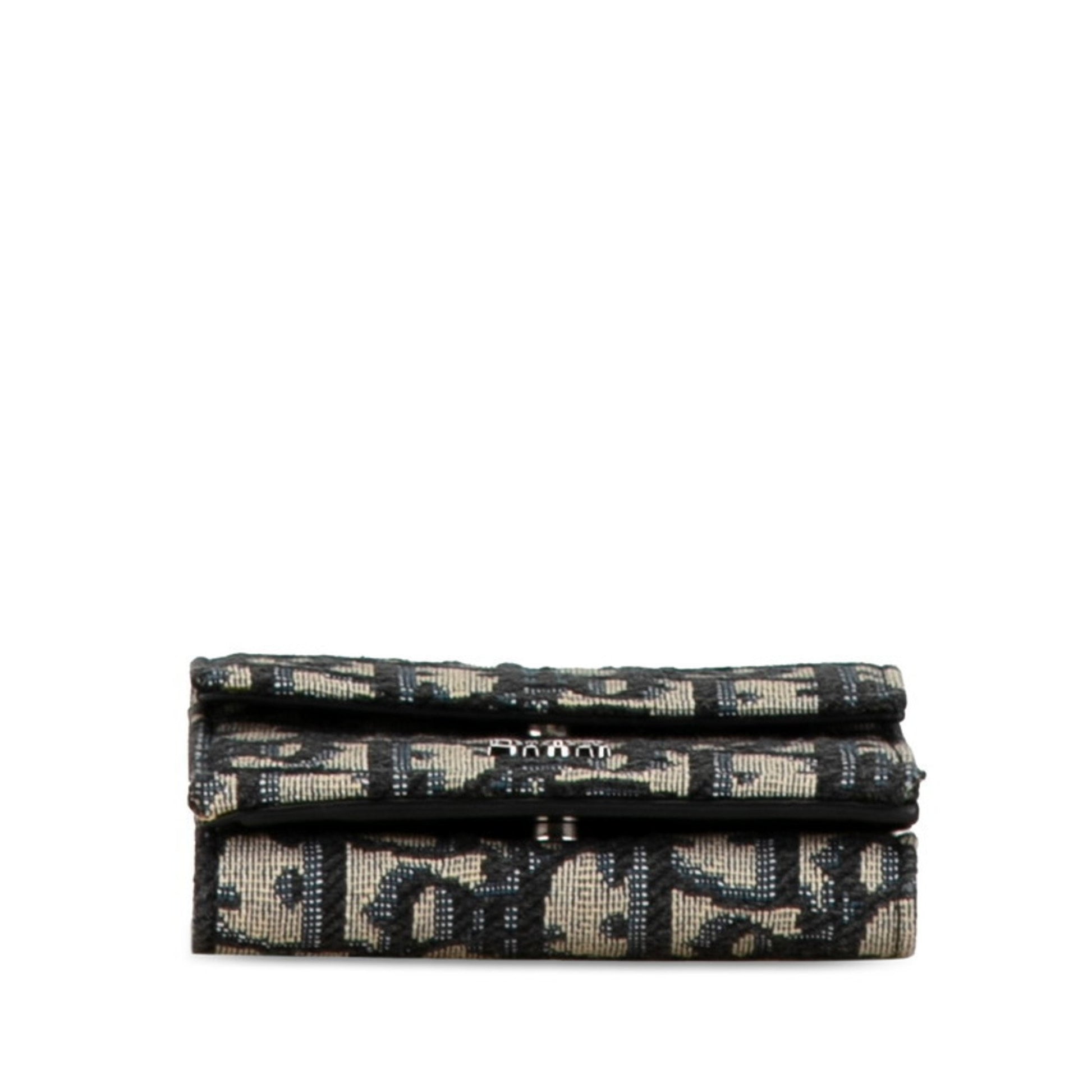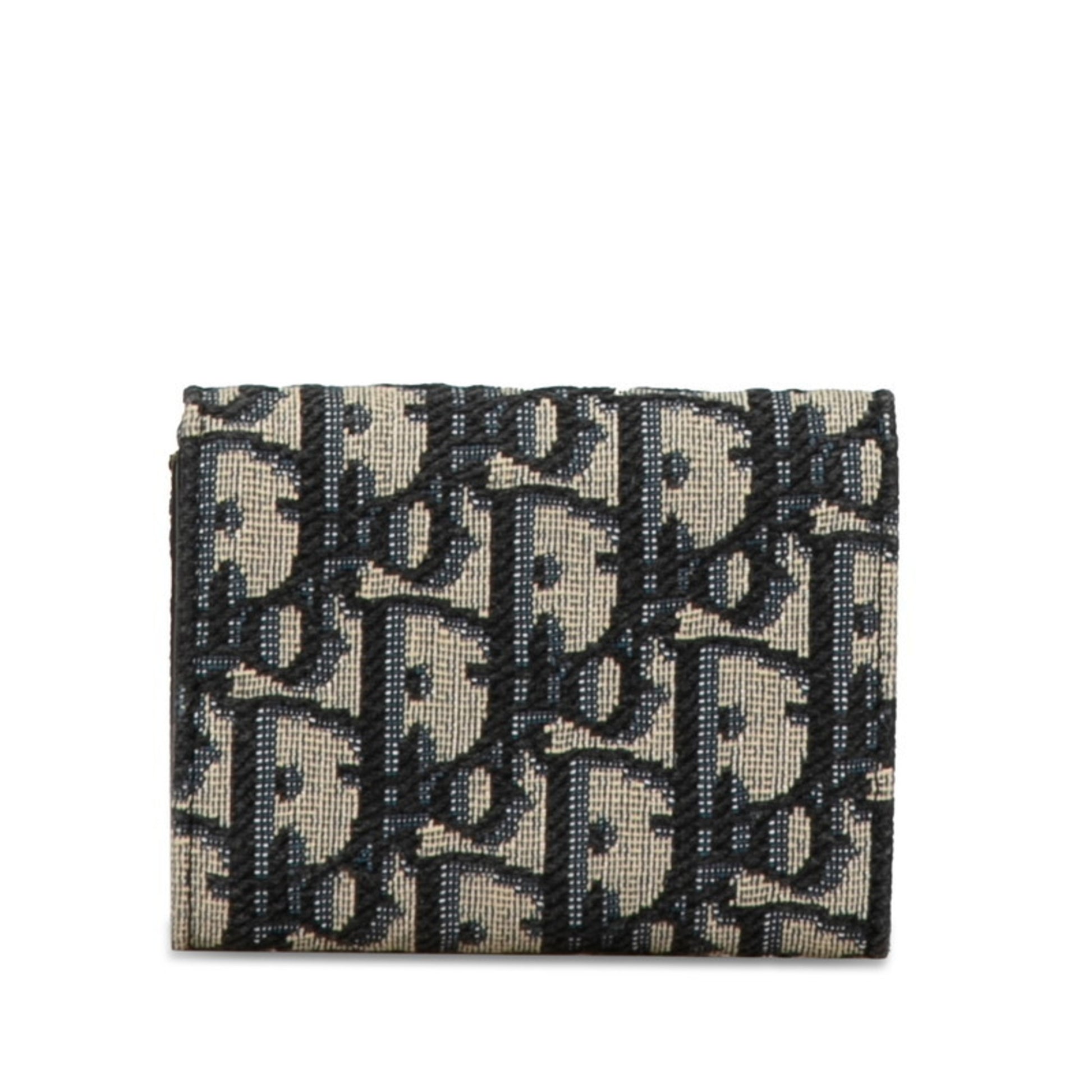 Christian Dior Dior Oblique Tri-Fold Wallet Navy Beige Canvas Leather