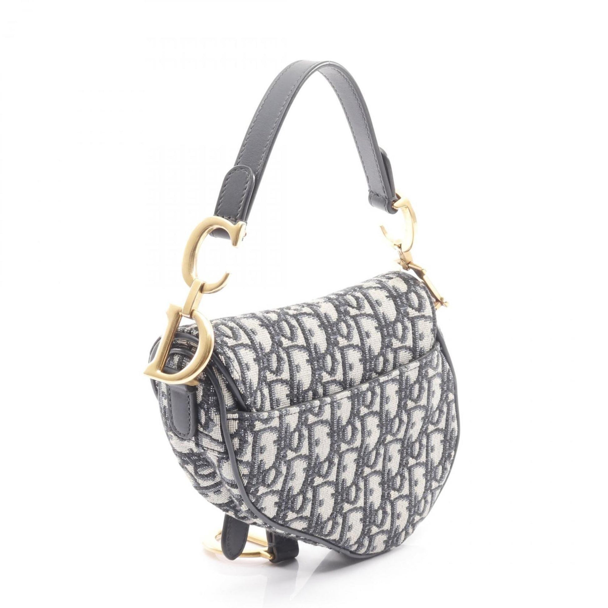 Christian Dior Dior Saddle Bag Mini Oblique Jacquard Handbag Canvas Leather