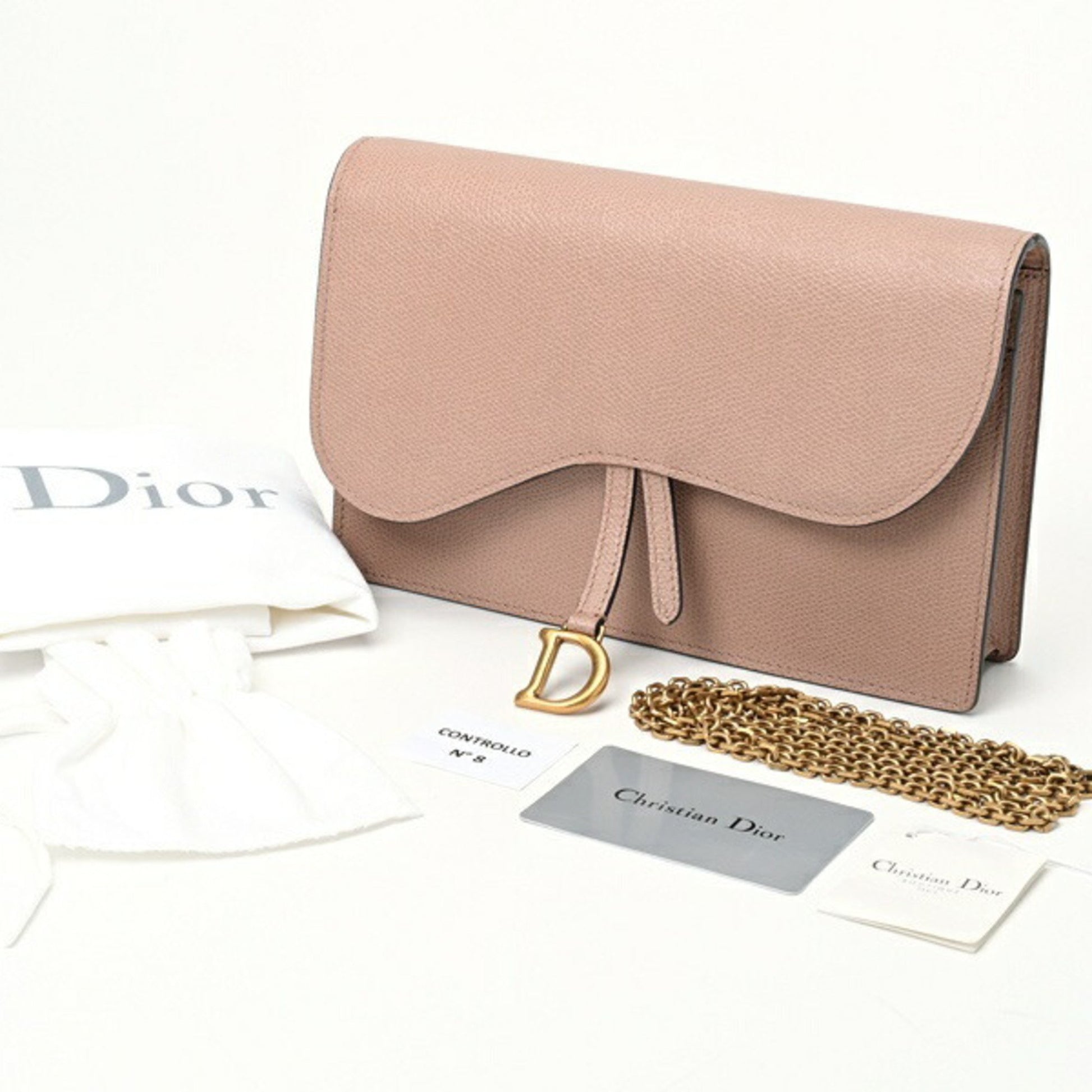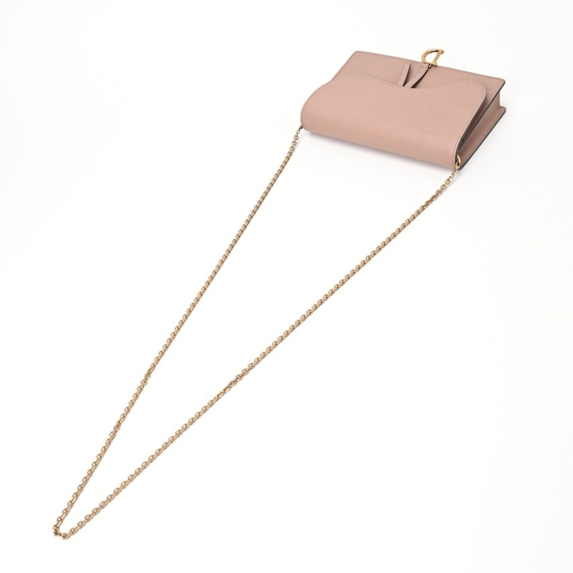 Christian Dior Dior Saddle Chain Pouch Wallet Shoulder Bag S5620Cwvg Leather Pink Beige S-157229