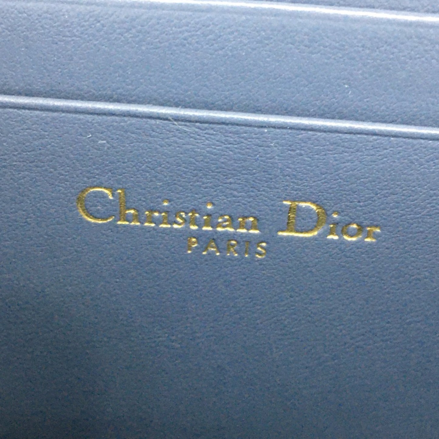 Christian Dior Dior Striped Wallet Round Zipper Coin Case Leather