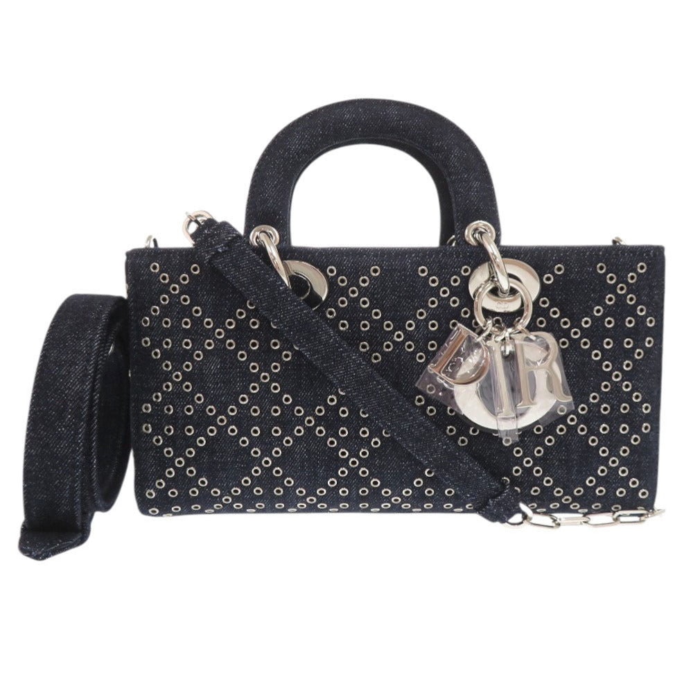 Christian Dior Handbag Denim Blue Lady D-Joy Cannage Medium