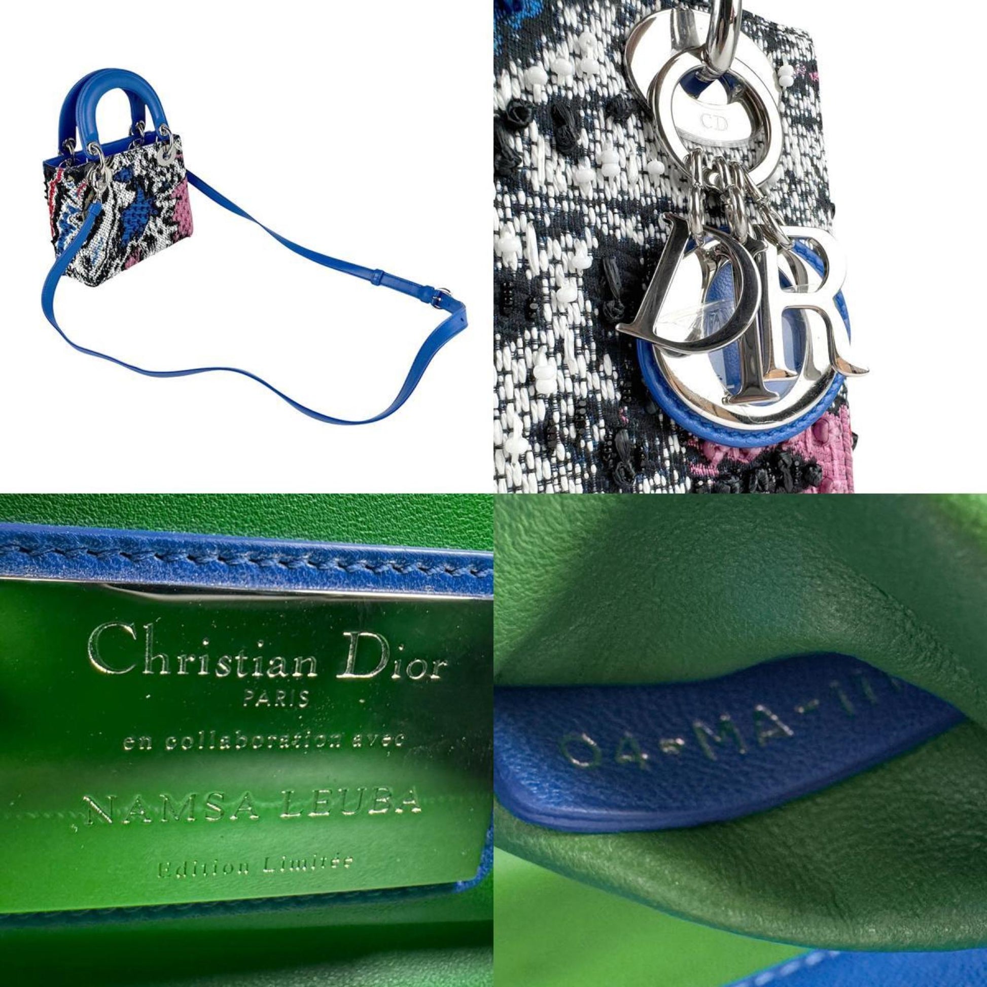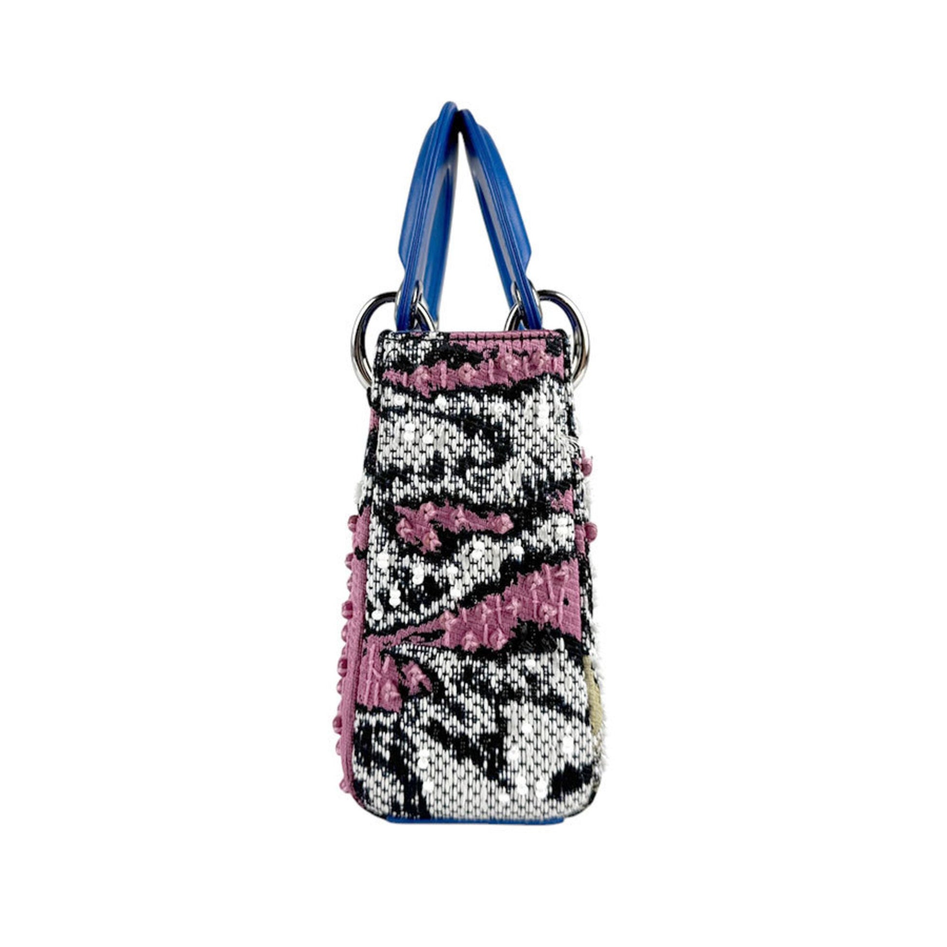 Christian Dior Handbag Shoulder Bag Lady Tweed Beads Leather Blue X Black