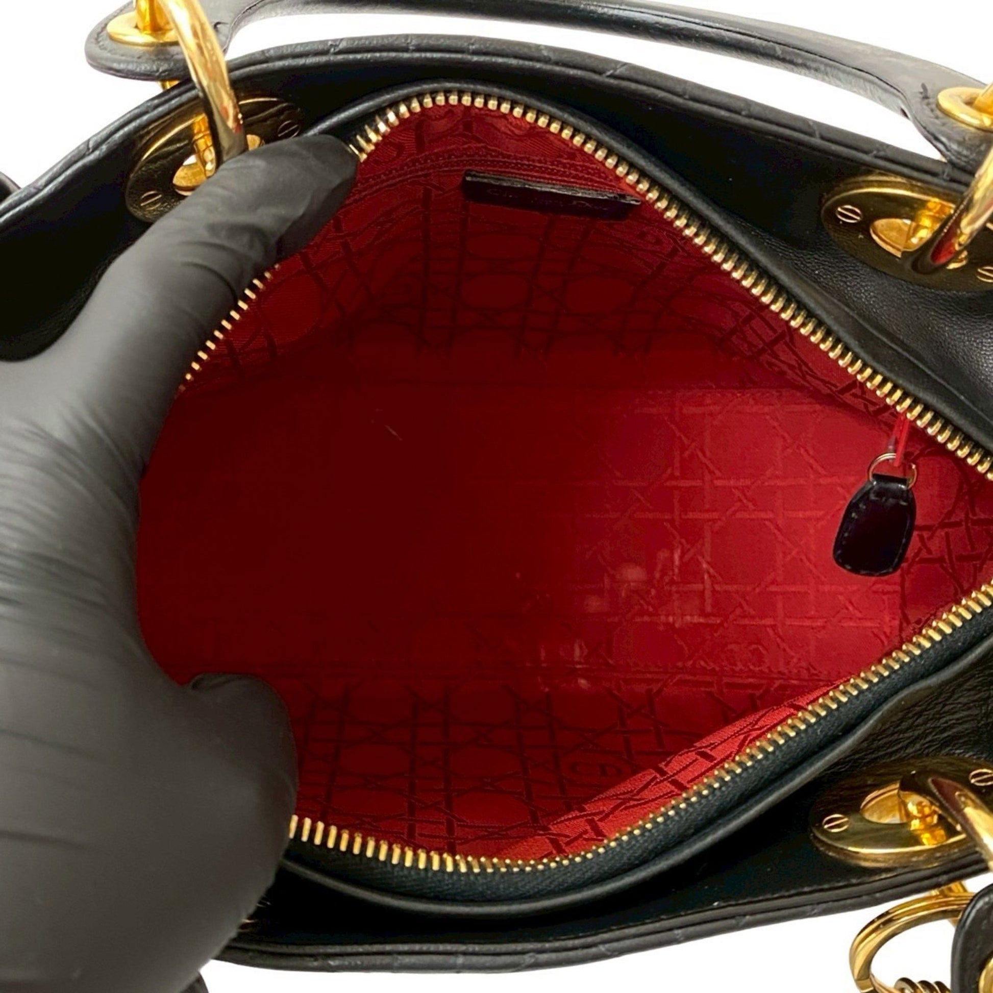 Christian Dior Lady Cannage Stitched Leather Handbag/Mini Tote Bag In Black